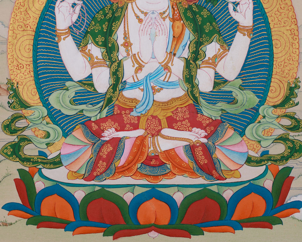 Traditional Compassion Buddha, Chenrezig Painting | The Divine Protector and Healer of All Beings