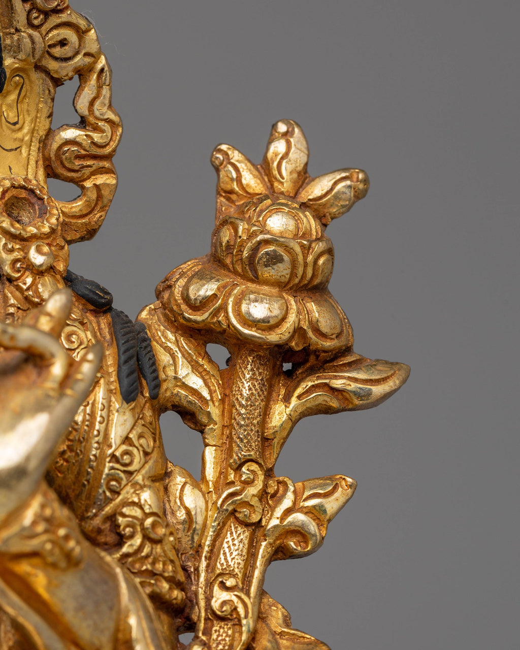The compassionate green Tara figurine represents spiritual protection and compassion. This Buddhist Syamatara Statue brings calm and compassionate energy to spiritual settings. Crafted with care, it represents enlightenment and gives a peaceful refuge for meditation and reflection, making it an excellent addition to holy spaces seeking spiritual upliftment and calm.