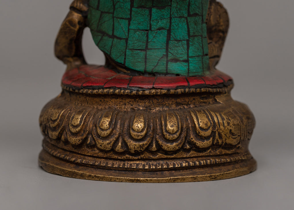This exquisite copper Garuda Statue with Turquoise is a powerful symbol of Tibetan spiritual creativity and culture. This handcrafted deity sculpture weighs 1.30 kg and is embellished with brilliant turquoise and coral inlays, which add to its divine spirit and visual attractiveness. Garuda, a revered character in Tibetan and Hindu mythology, represents strength, wisdom, and protection, making this statue an essential addition to any sacred altar, meditation room, or home decor.