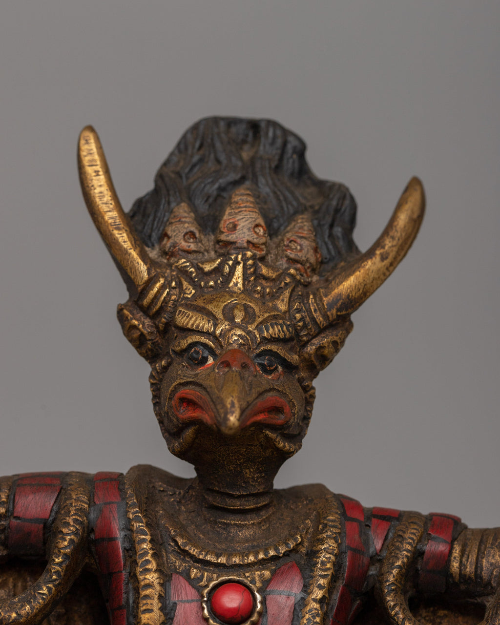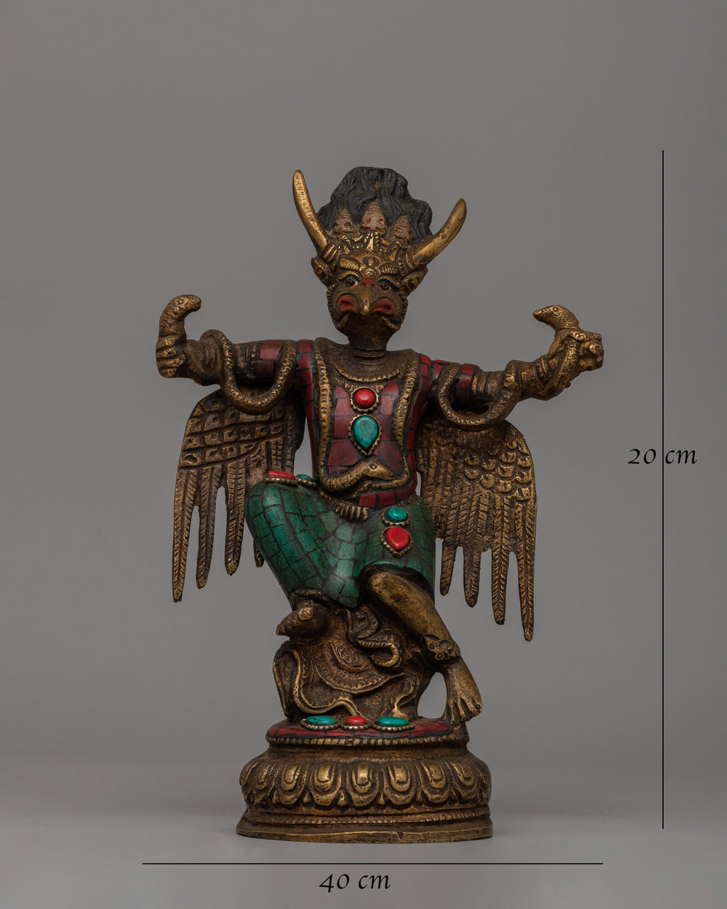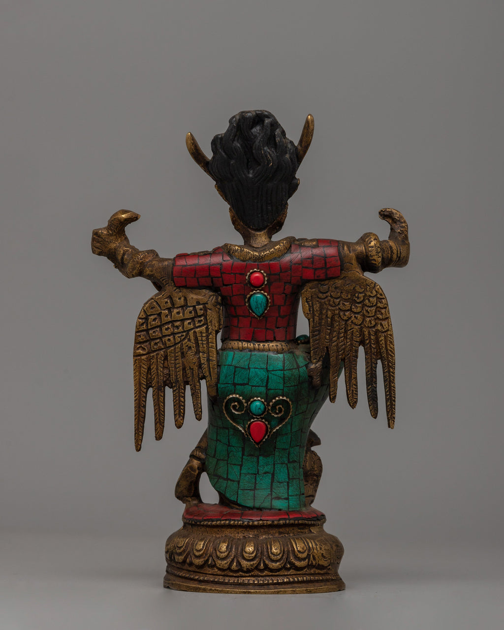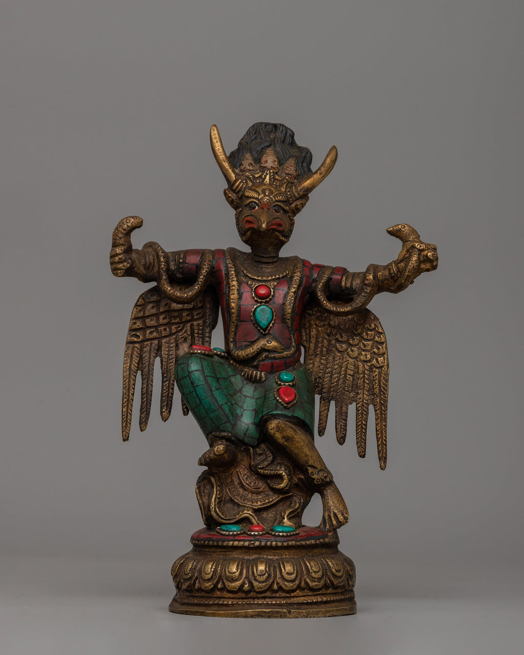 Copper Garuda Statue with Turquoise - Tibetan deity sculpture