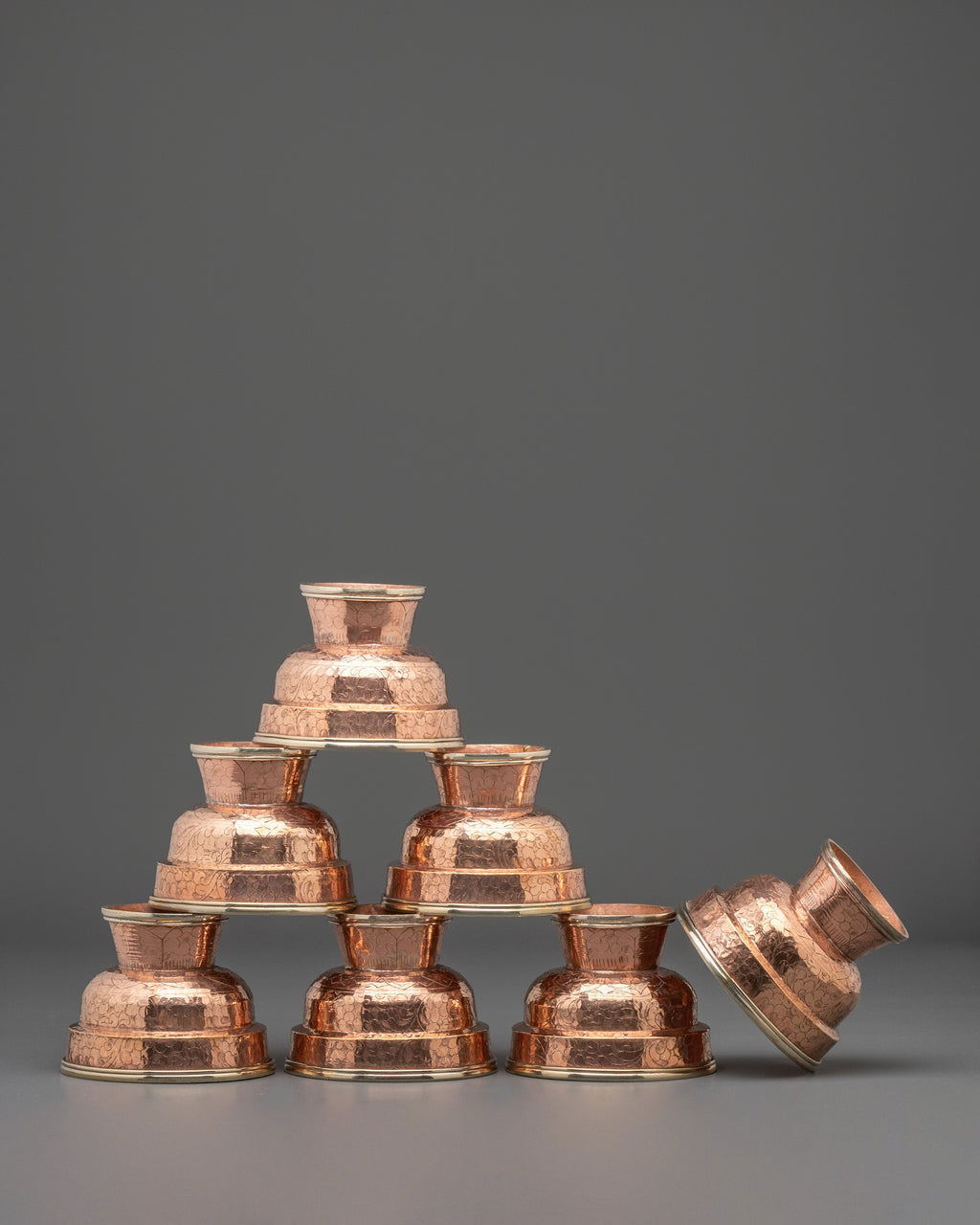 Handcrafted Copper Prayer Offering Bowl Set | Handcrafted Tibetan Altar Bowls