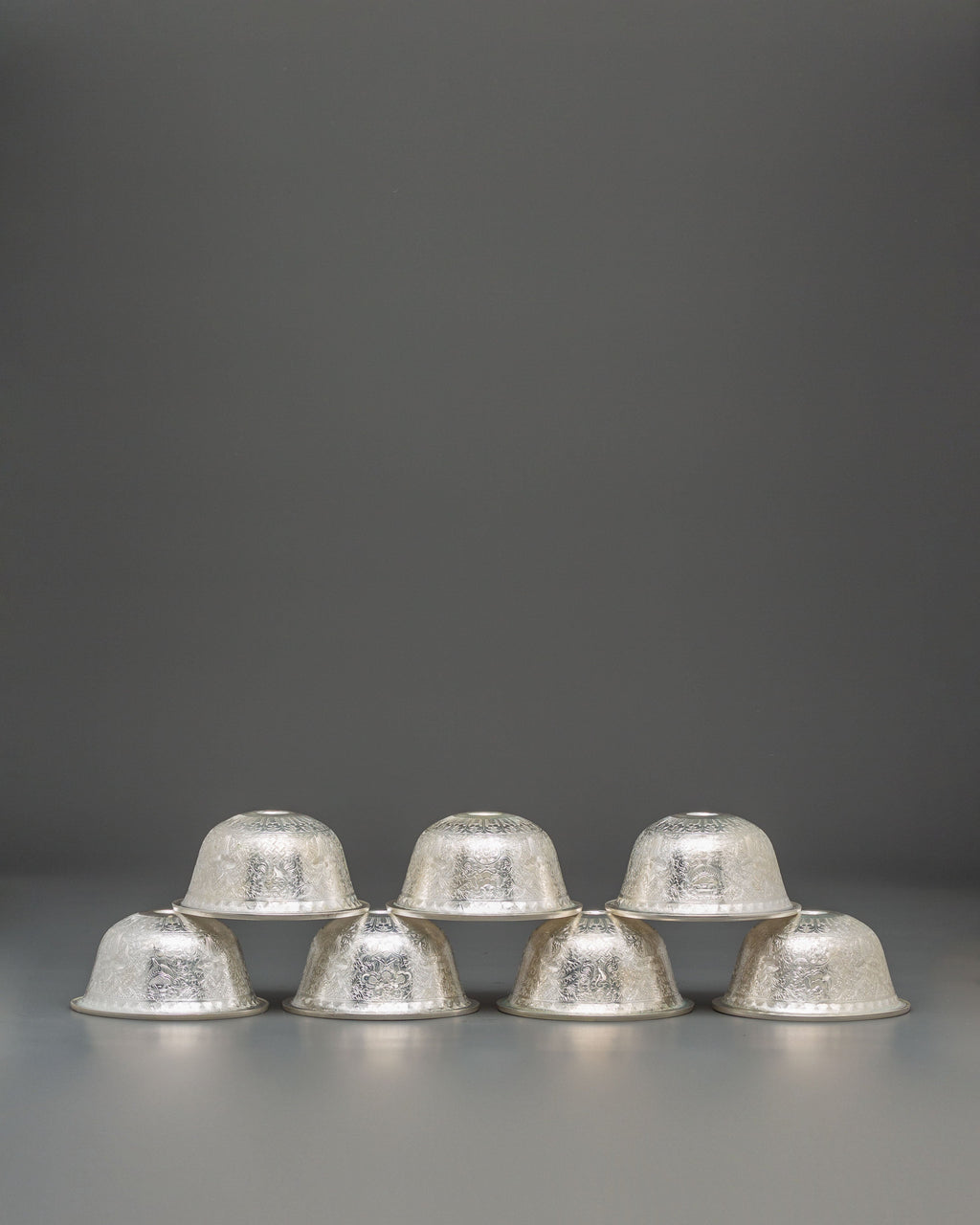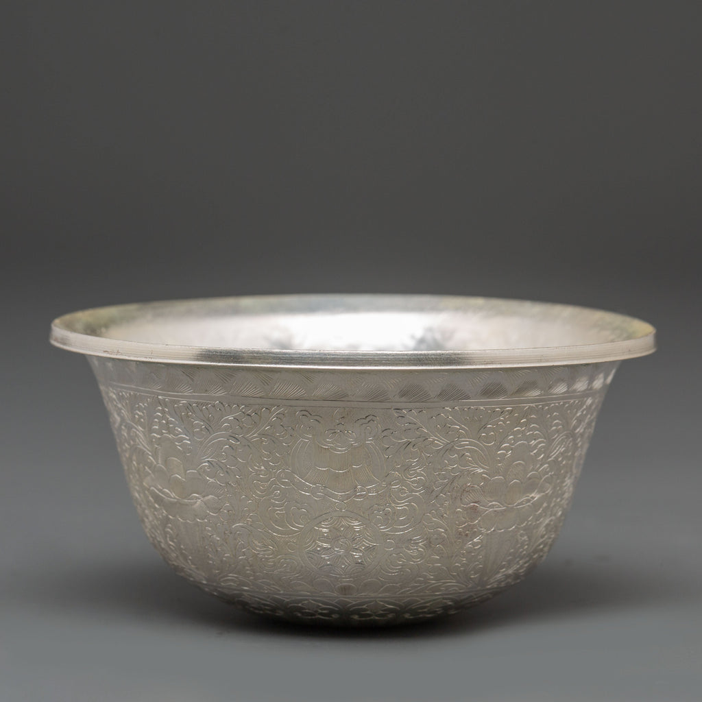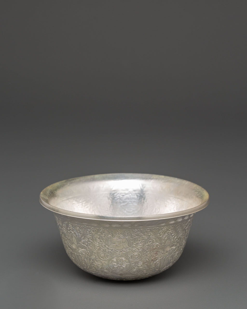 These copper bowls with a refined silver-plated finish beautifully combine spiritual symbolism and skilled artisan craftsmanship. Copper holds deep cultural significance in Himalayan rituals, while the silver plating adds a touch of elegance that enhances any altar or meditation space. Weighing a balanced 0.80kg as a set, these bowls offer both visual appeal and practical stability for daily devotional use. Perfect for practitioners, collectors, or anyone seeking to create a serene, sacred environment, this Copper Ritual Offering Bowl Set elevates Buddhist altars, meditation rooms, and ceremonial practices alike. Its design and meaningful purpose make it an inspiring centerpiece for spiritual reflection and connection.