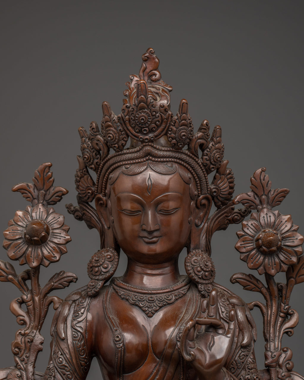 Handmade Copper Sculpture of White Tara | Longevity Blessings