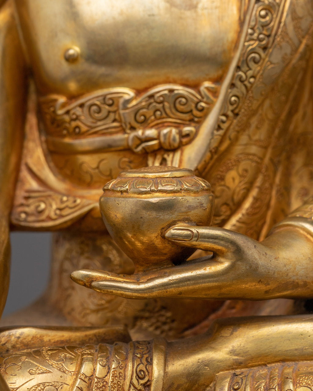 The fire gold plating gives this statue a radiant appearance, while the copper material provides a deep, earthy tone. This statue is a perfect addition to any altar, meditation space, or home décor, bringing both beauty and spiritual significance.