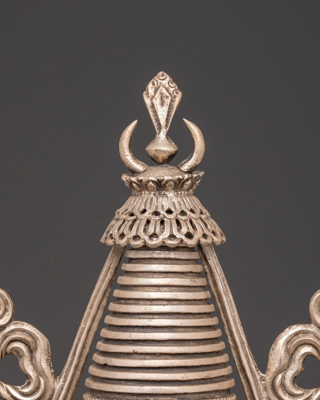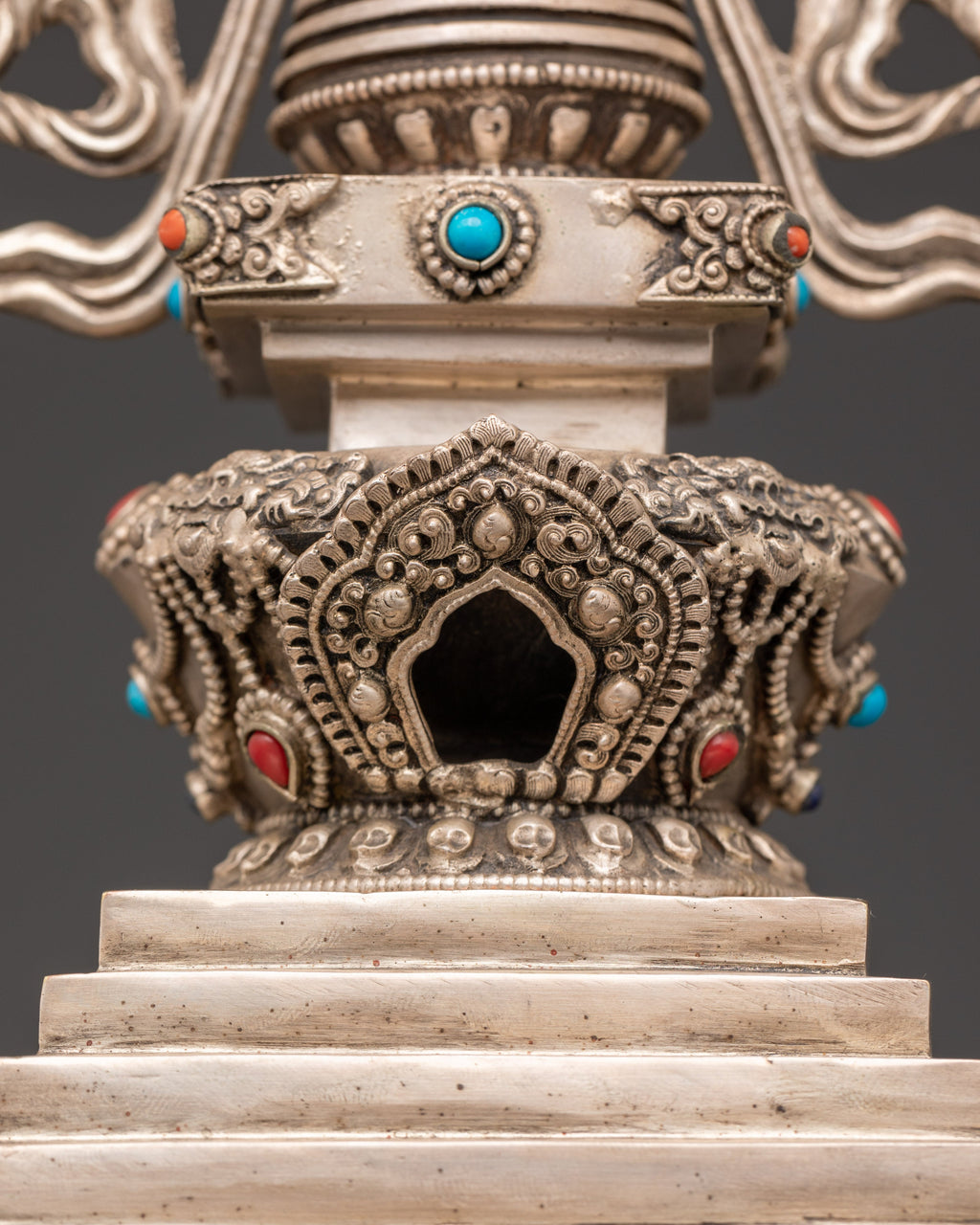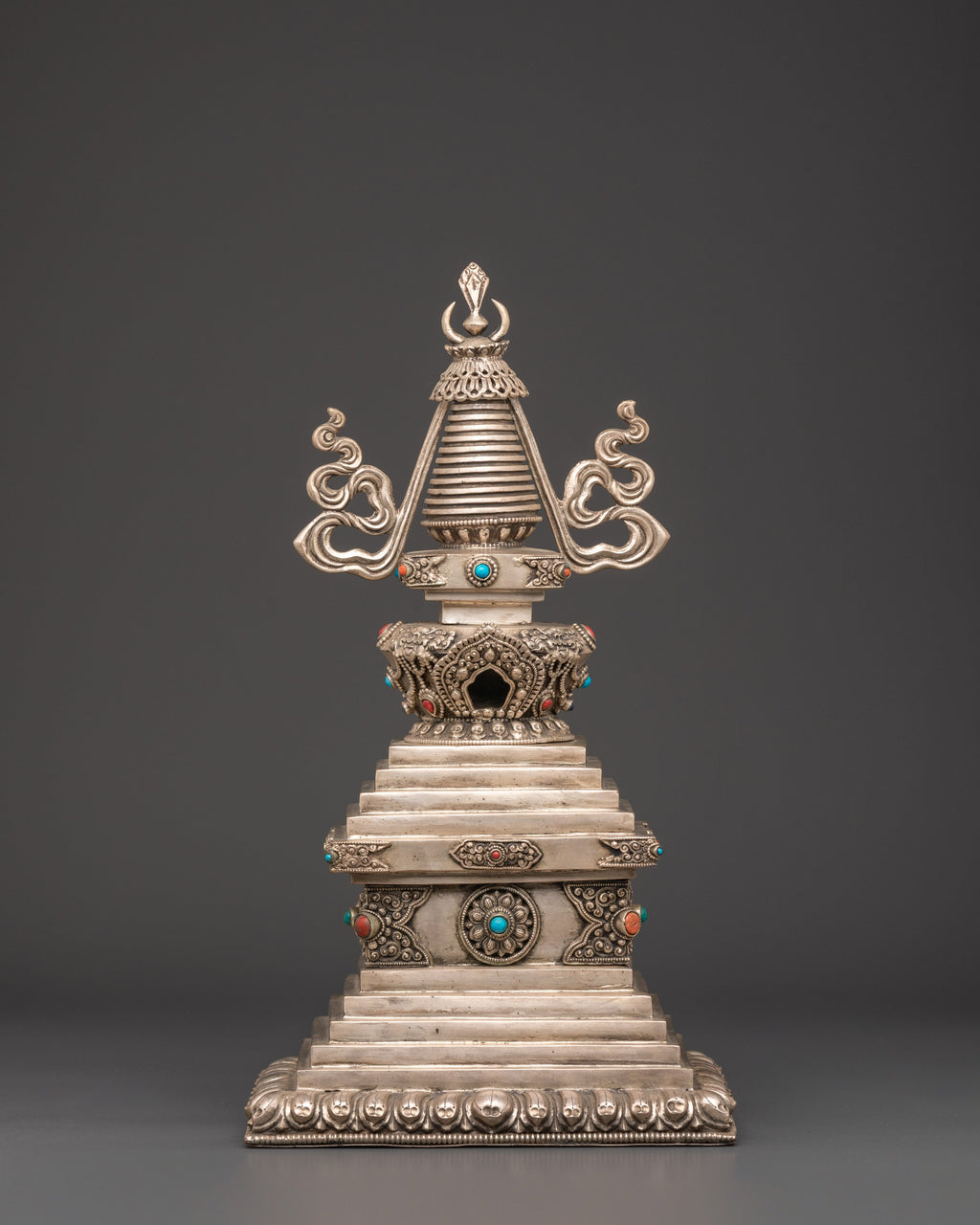 Handmade Copper Stupa with Silver Plating | Tibetan Buddhist Sculpture
