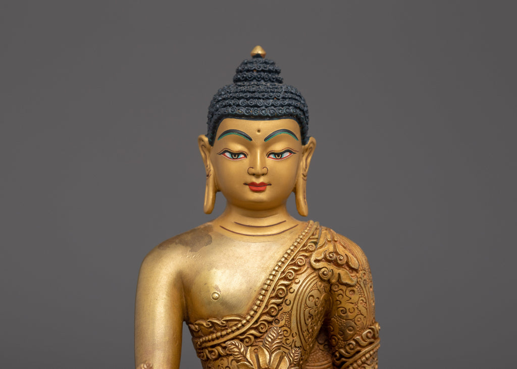 Copper Supreme Healer Medicine. The Buddha Statue represents the essence of Buddhist healing and spiritual wellness. The Medicine Buddha is revered in Tibetan Buddhism for his extraordinary capacity to heal afflictions, remove impediments, and protect devotees. This sacred statue, made of copper and plated in gold, radiates a healing energy that is ideal for those seeking spiritual guidance, physical wellness, or peace. Its 17cm height and 12.5cm breadth make it suitable for personal altars, meditation spaces, and healing rooms.