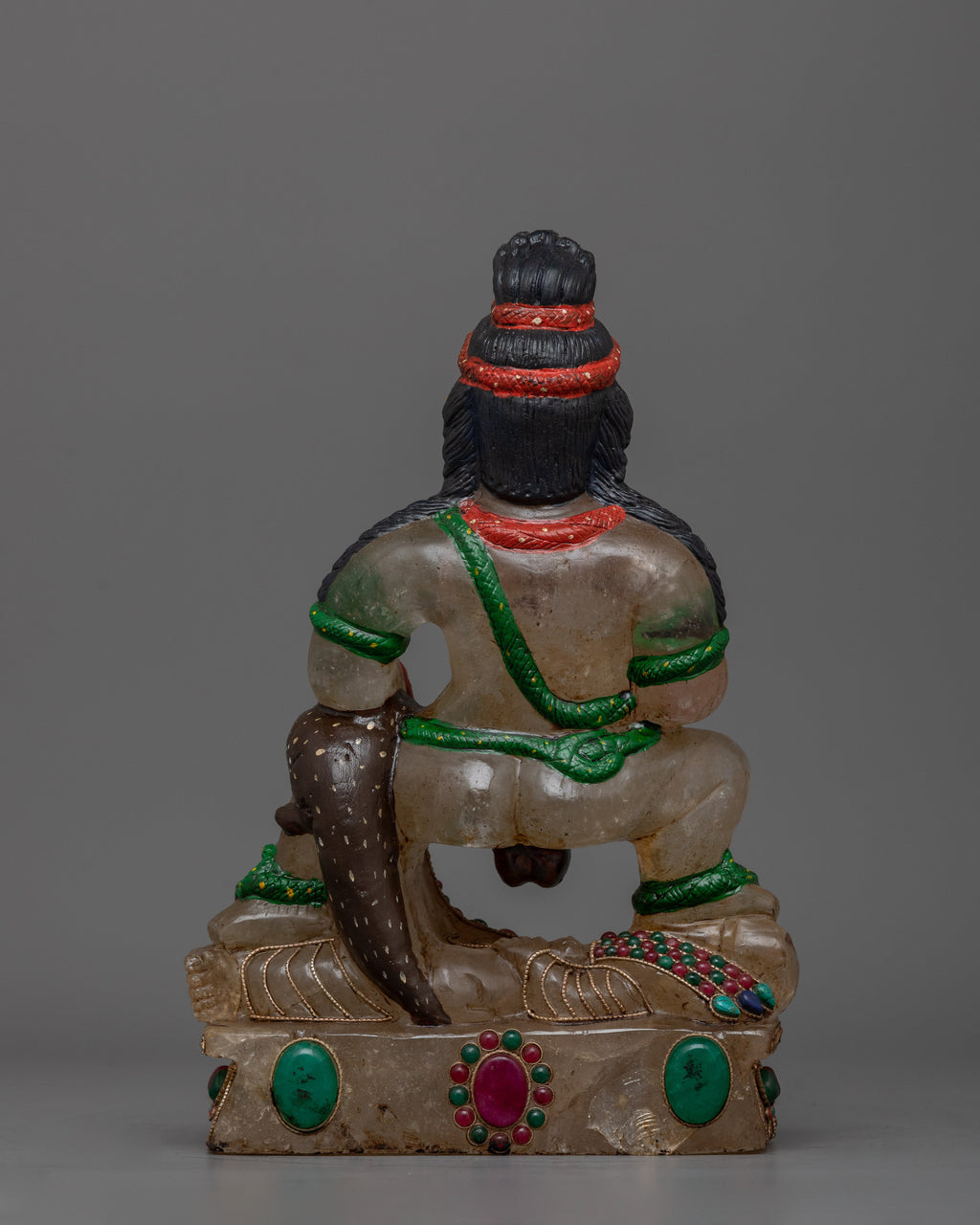 This Black Dzambhala Prosperity Figurine, a treasured symbol of prosperity and abundance in Buddhist tradition, is a magnificent piece of holy art. It measures 10.6" (Height) x 7.1" (Base) and weighs 3.83 kg. The crystal body is precisely created and embellished with gold and acrylic paints, as well as hand-carved gemstones. Designed by Nepalese artisans, this figure contains spiritual importance and creative perfection, making it an ideal addition to altars, meditation places, or sacred collections.