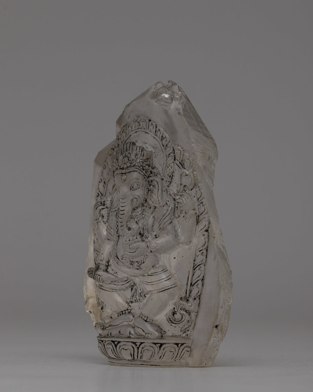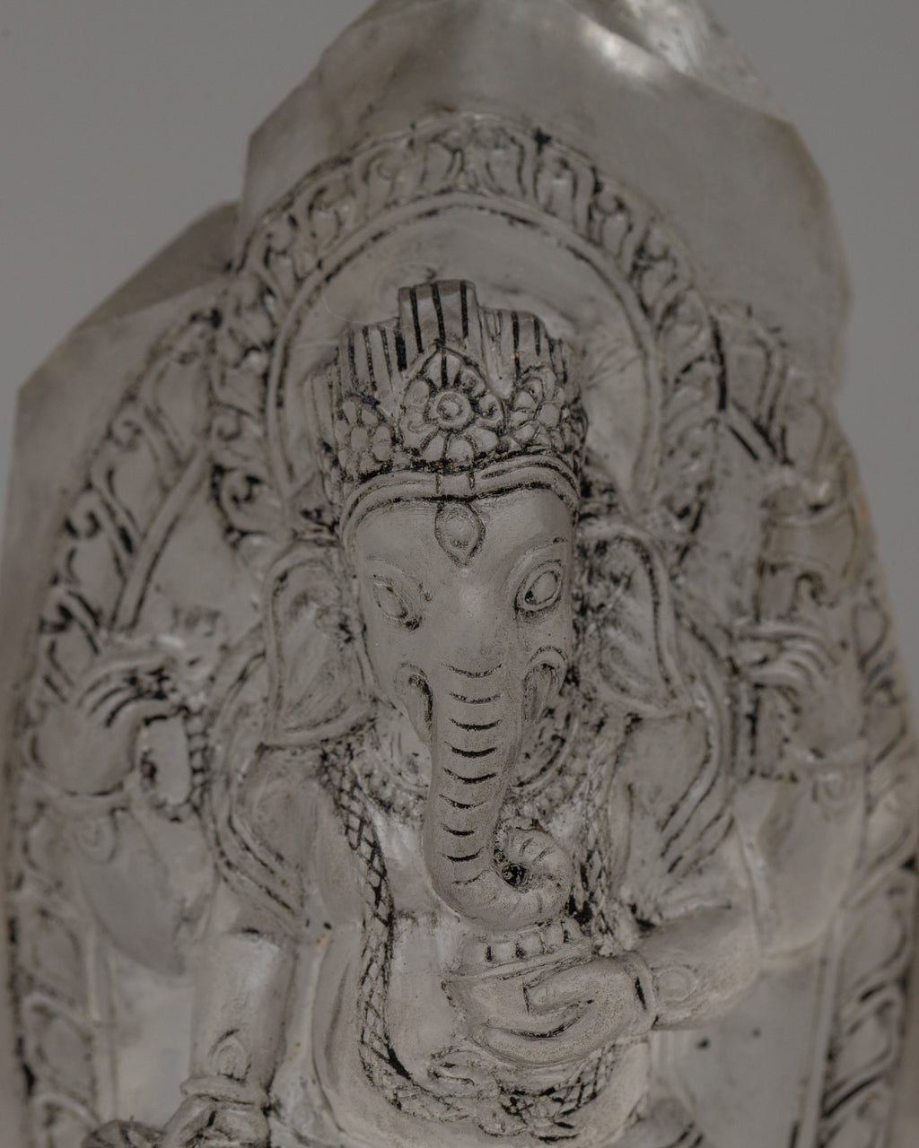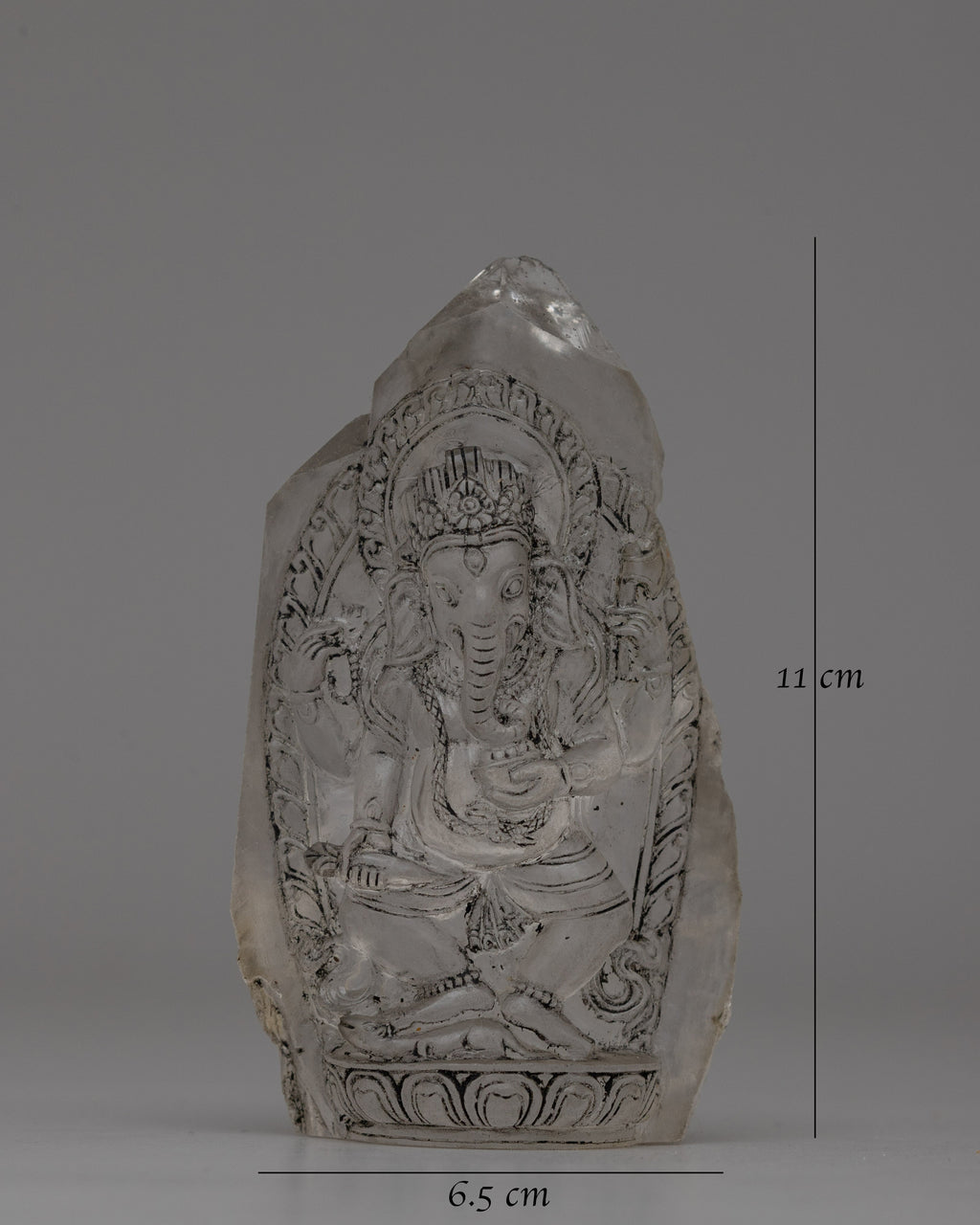 Standing 11cm tall and weighing 0.26kg, this crystal sculpture is ideal for altars, meditation rooms, or as a centerpiece for spiritual design. Its elaborate intricacies demonstrate the expertise and dedication of professional craftspeople, embodying the essence of Ganesh's significance as a guide to prosperity and clarity.