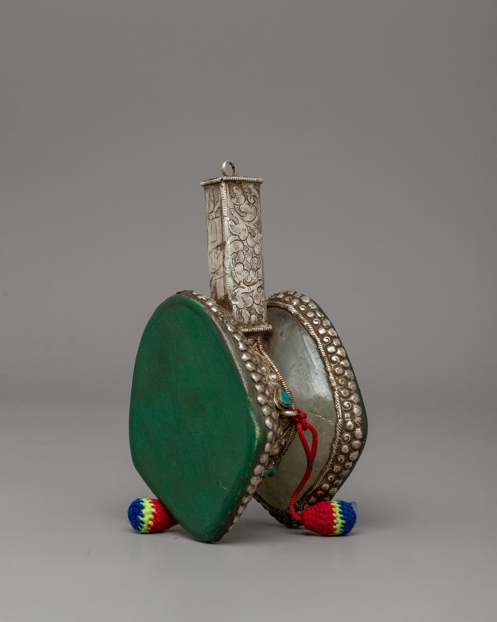 Crystal Quartz Damaru - Silver Damaru for Meditation and Rituals