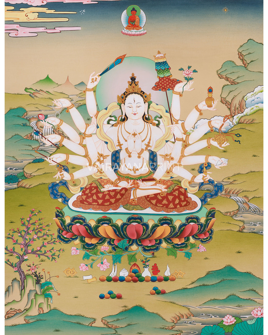 18 Armed Cundi Canvas Print | Buddhist Goddess of Compassion & Protection | Mother of Seventy Million Buddhas