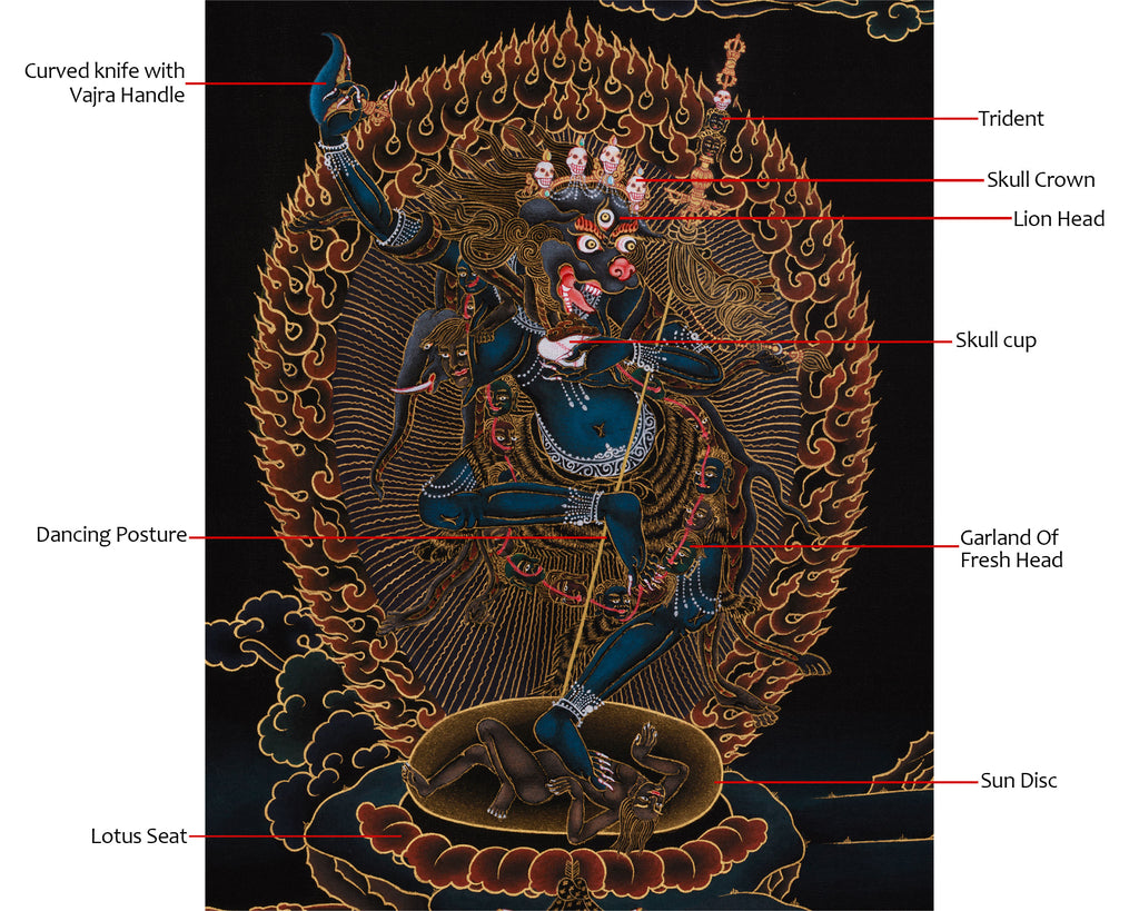Exquisite Dharma Protector Simhamukha Thangka | Lion-Headed Dakini
