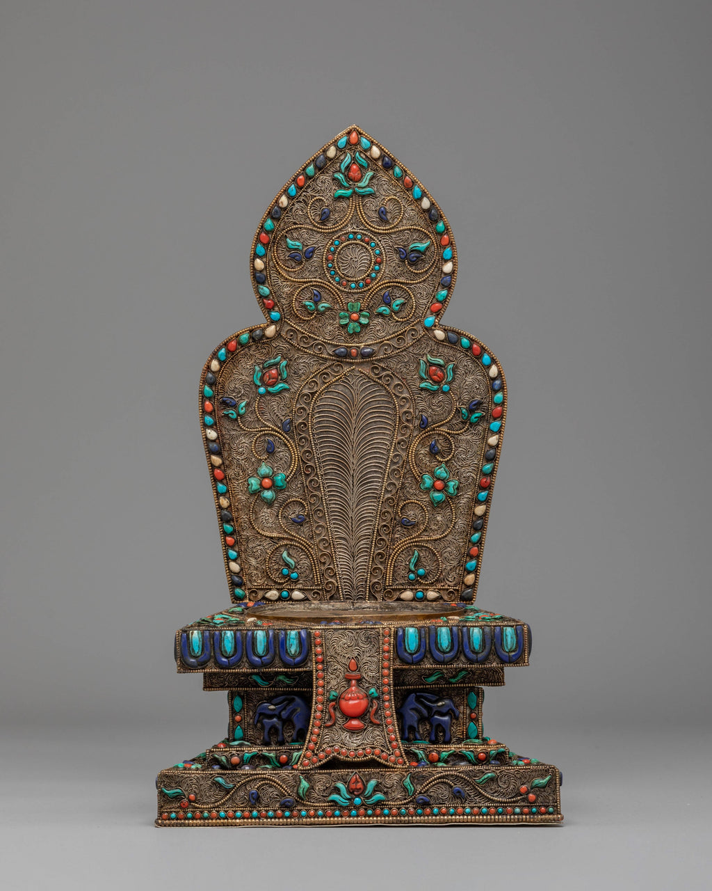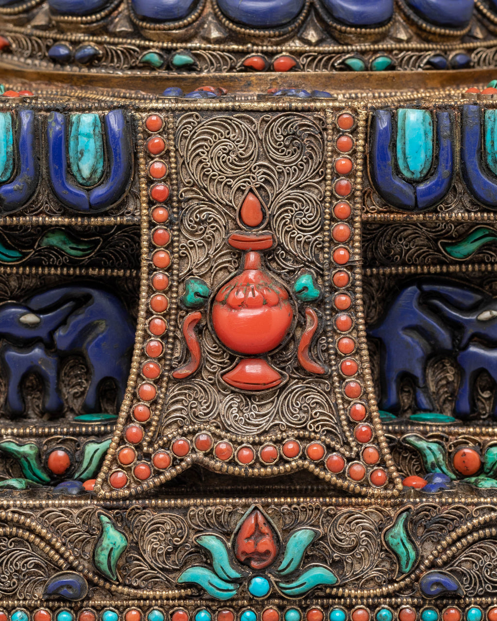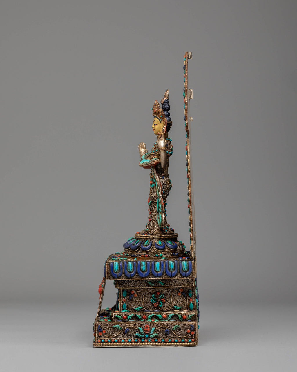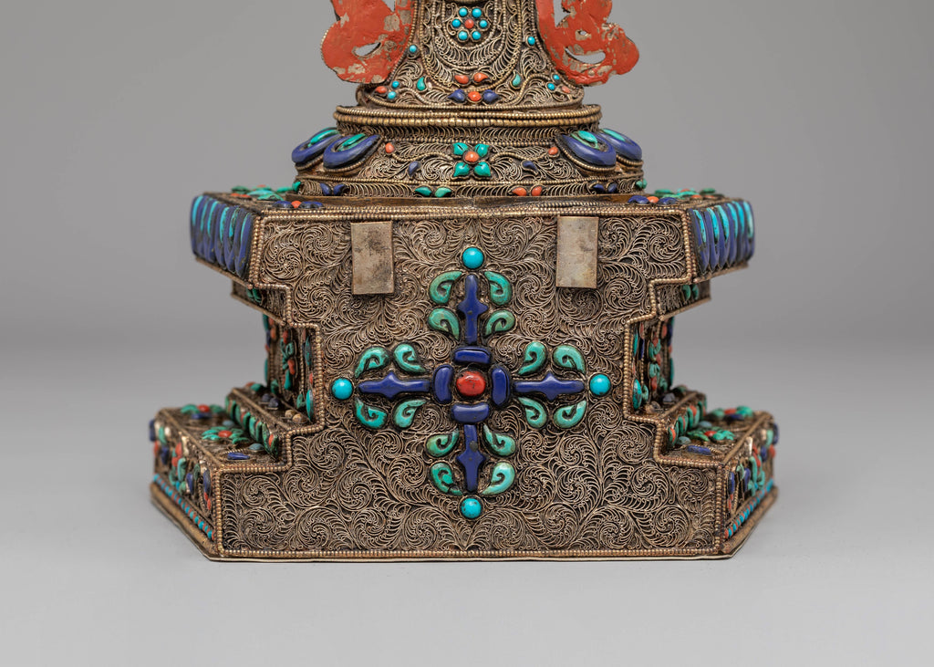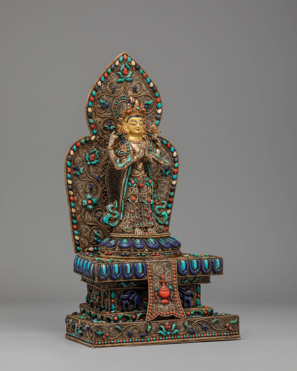 Chenrezig Statue with Turquoise, Coral & Lapis Lazuli | Beautiful Filigree Work