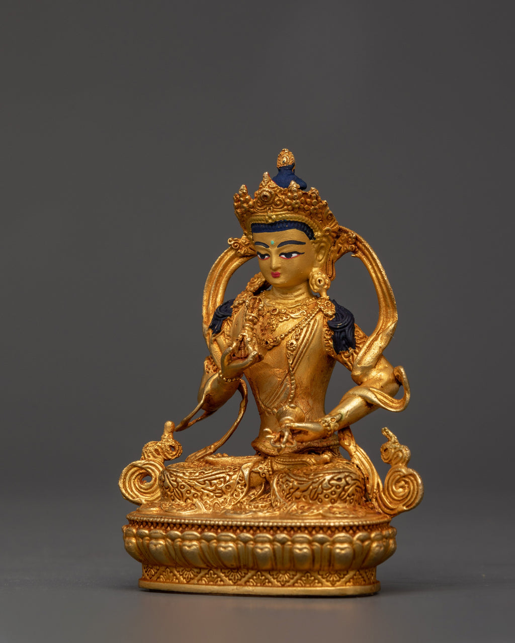 Crafted with meticulous attention to detail, this Tibetan Buddha healing sculpture is ideal for individuals seeking to enhance their meditation and mindfulness practices. The gold-plated copper finish creates a warm, brilliant glow that elevates the presence of this revered figure. Whether displayed on a home altar, meditation area, or holy space, this statue serves as a daily reminder of the power of healing, transformation, and spiritual balance. This Vajrasattva statue is an ideal addition to Buddhist decor, promoting harmony and spiritual progress in any setting.
