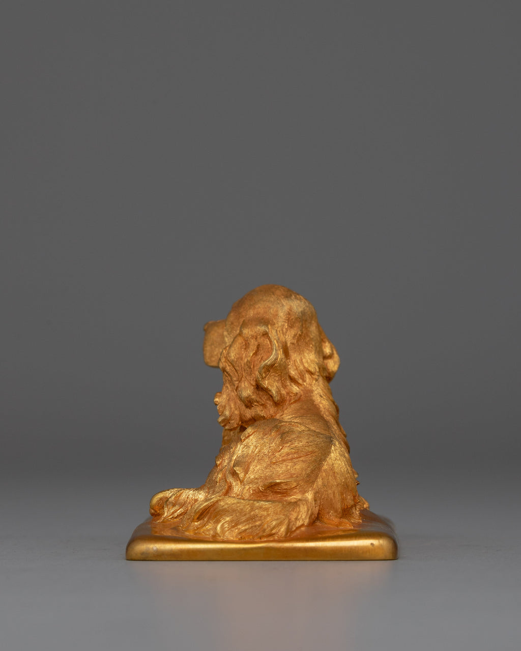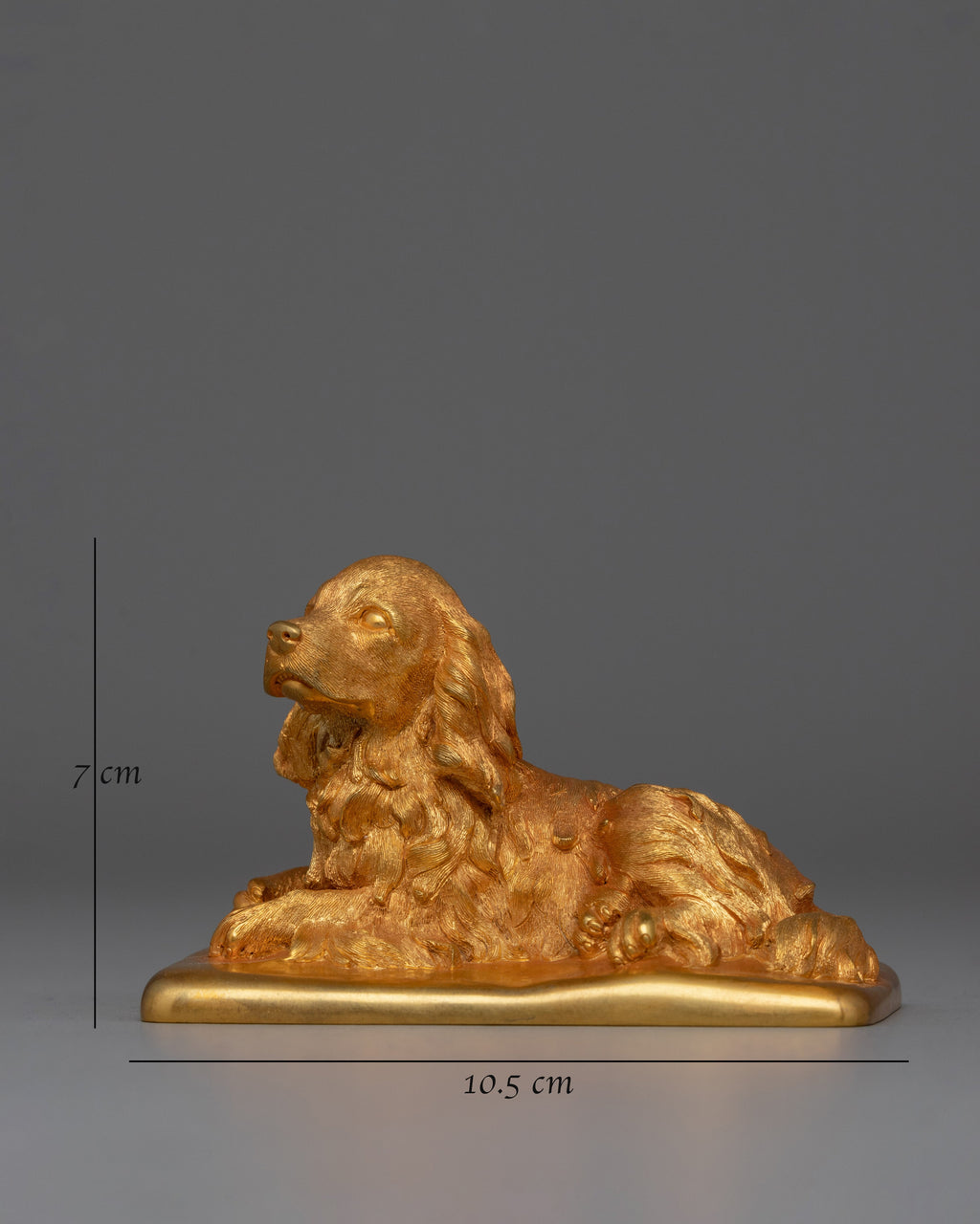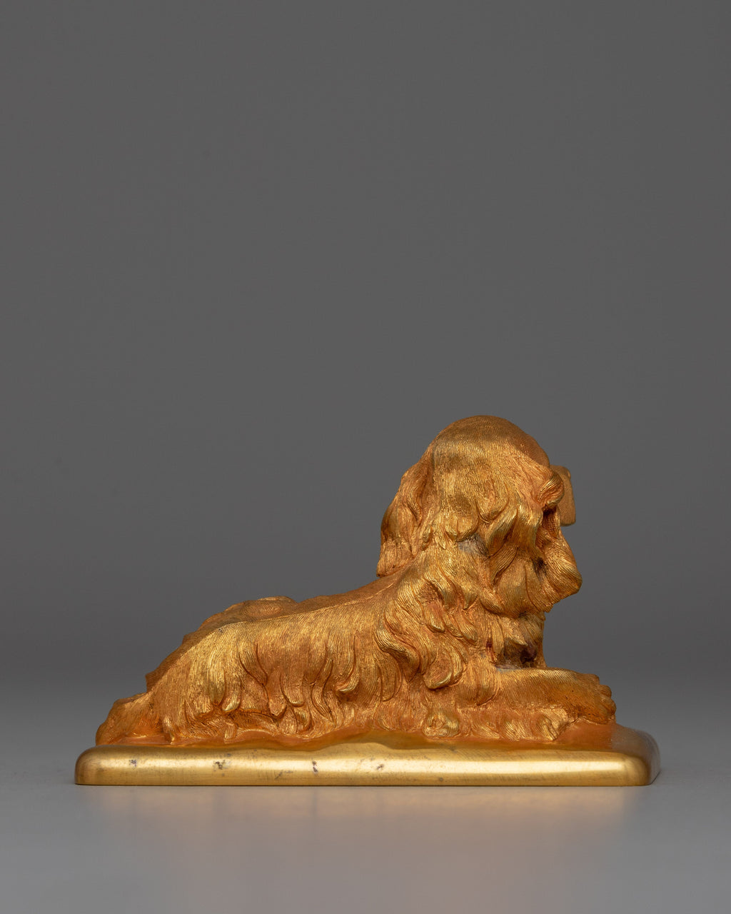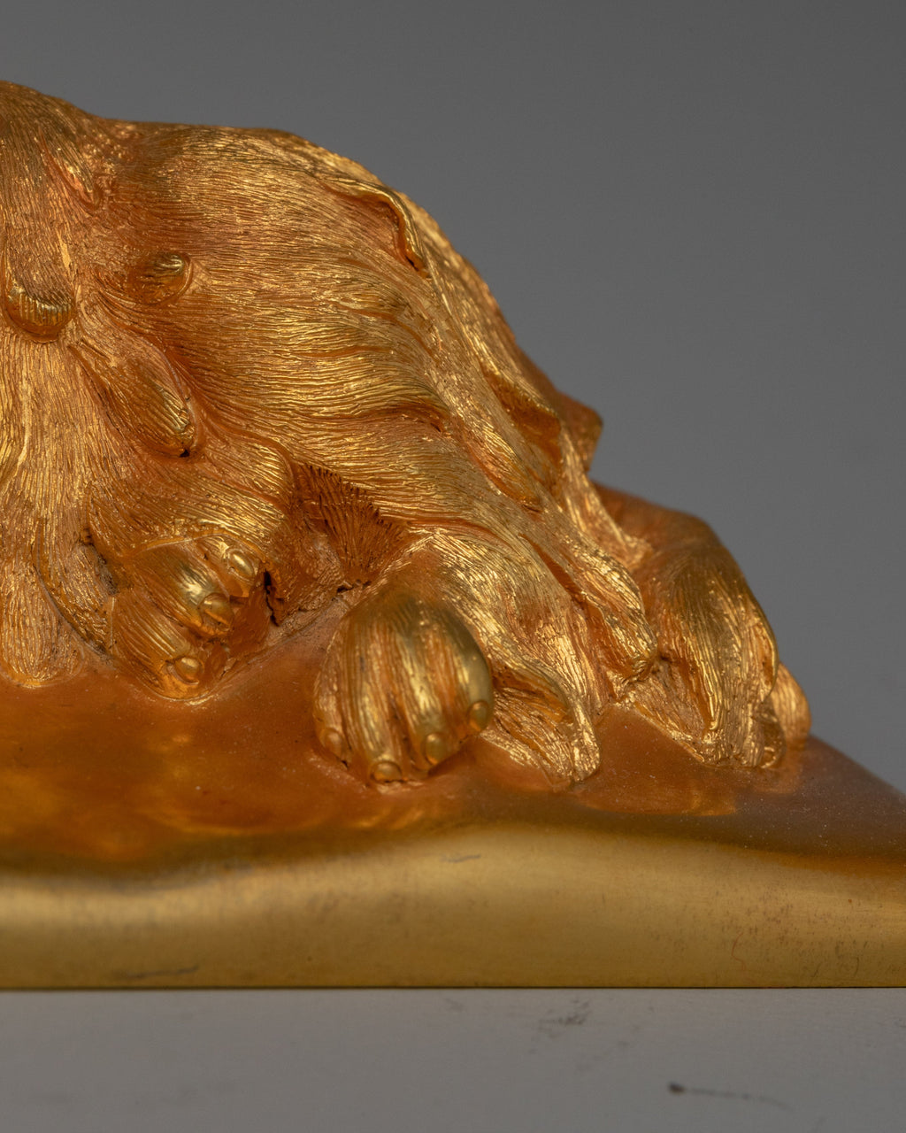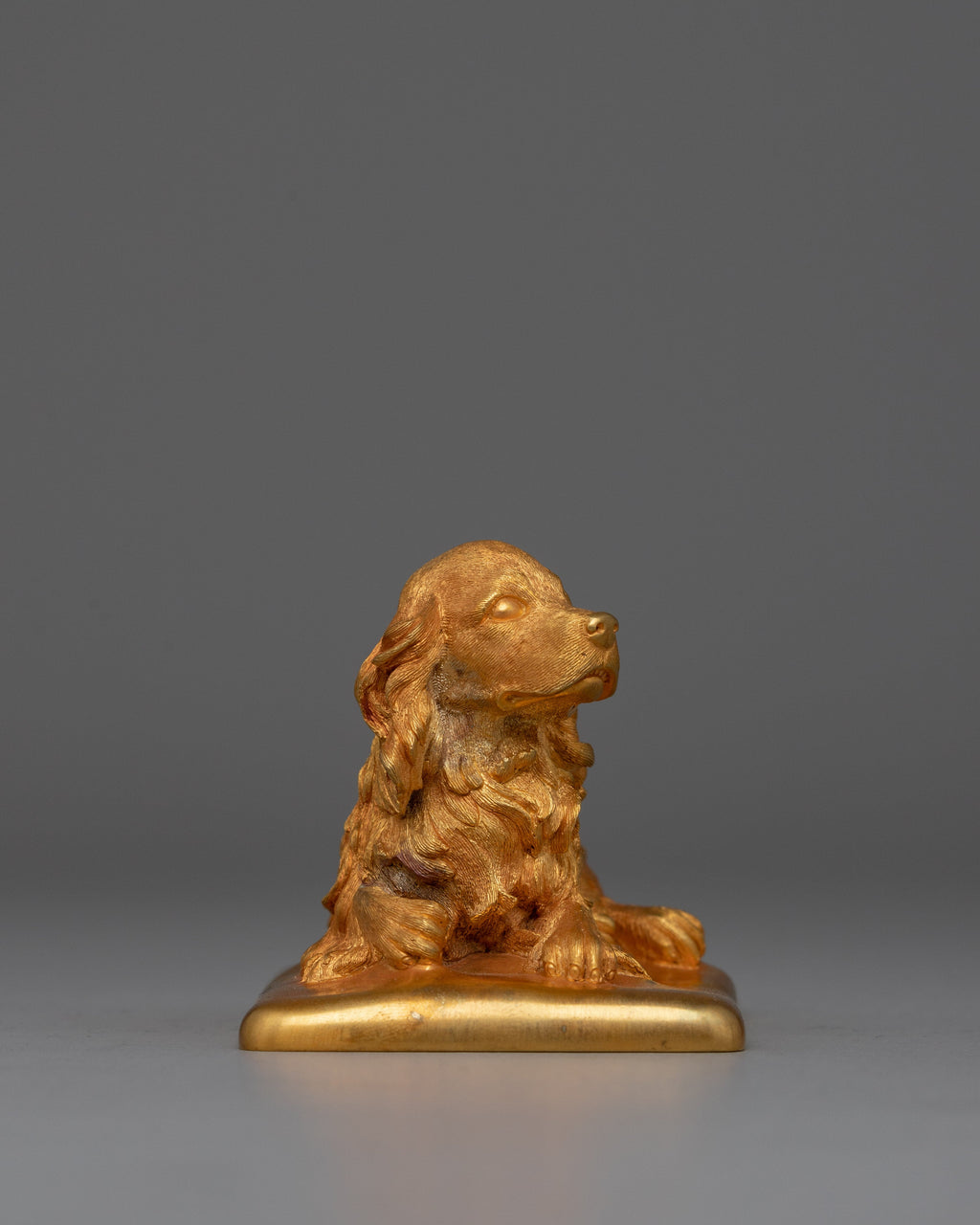 The shrine portrays a sense of tranquility and loyalty, characteristics frequently associated with dogs. Every curve and texture on the image illustrates the artist's devotion to detail, from the significantly textured fur that flows organically over the dog's body to the sophisticated expression on its face. The electro gold plating lends an energetic sheen to the statue, giving it a sophisticated and elegant appearance that makes it suitable for exhibition in living spaces, offices, or as the main attraction in fine art collections.