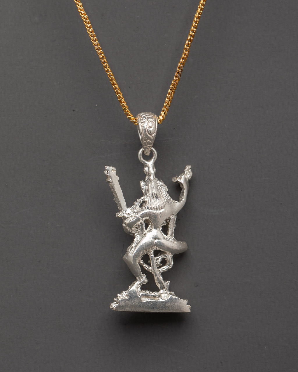Dorje Phagmo, the female embodiment of Vajrayogini, is revered for her fierce protection and transformative powers. The intricate design of this locket features Dorje Phagmo in her powerful, dynamic stance, symbolizing strength and the ability to overcome obstacles. The use of pure silver in its creation enhances the locket's spiritual energy, providing the wearer with a sense of protection and wisdom. The silver motif depicts her in a dance of destruction and creation, a reminder of the impermanence of life and the constant flow of energy in the universe.