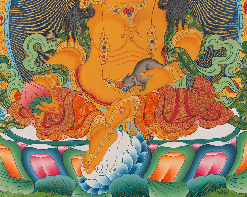 Hand-Painted Dzambala the God of Wealth Tibetan Thangka