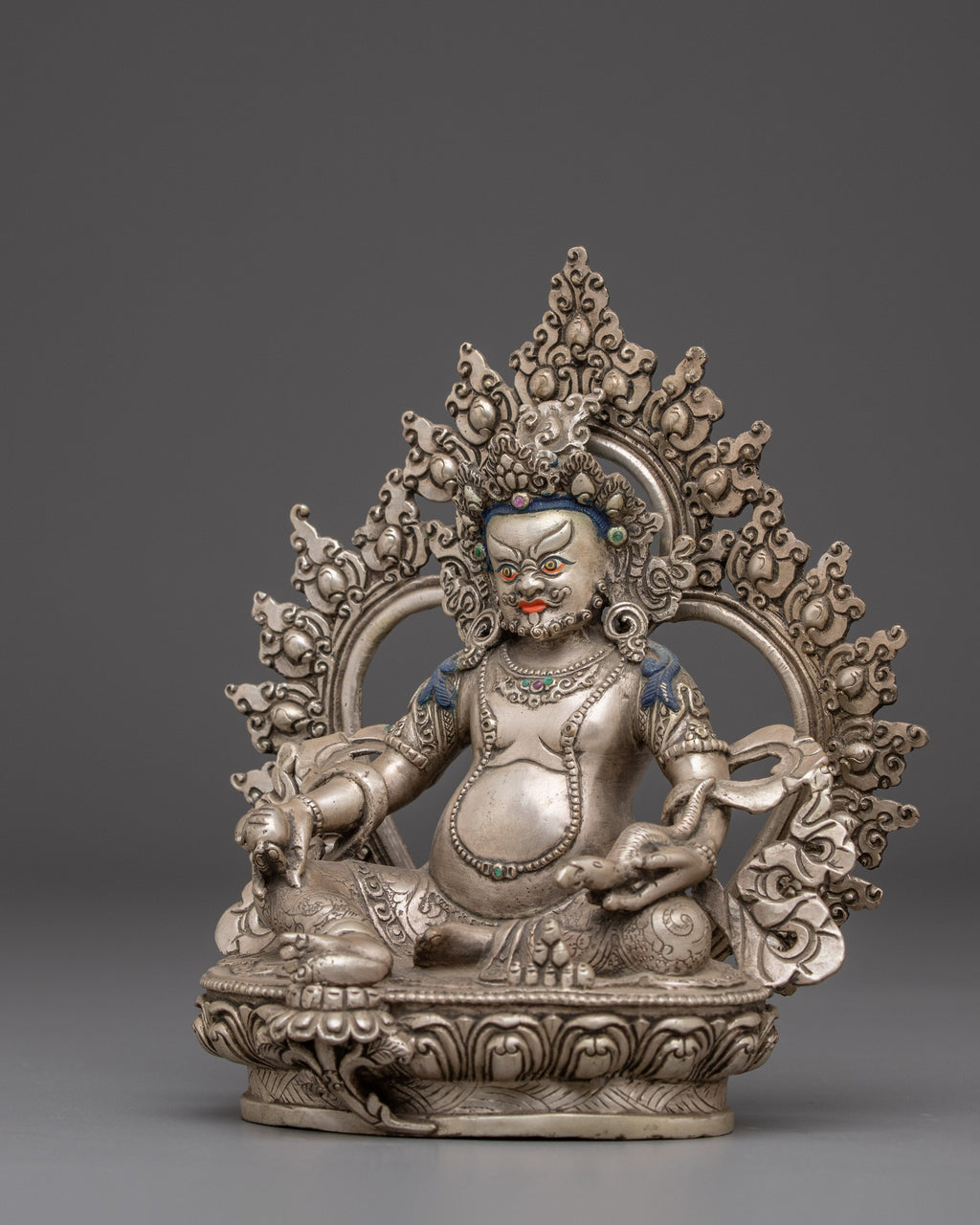 Dzambhala is a protective deity associated with wealth and prosperity. Many forms and traditions are associated with this wealthy deity, but he is usually depicted as yellow in color and holding a mongoose in his left hand. This statue has accurate traditional iconography and fine details.