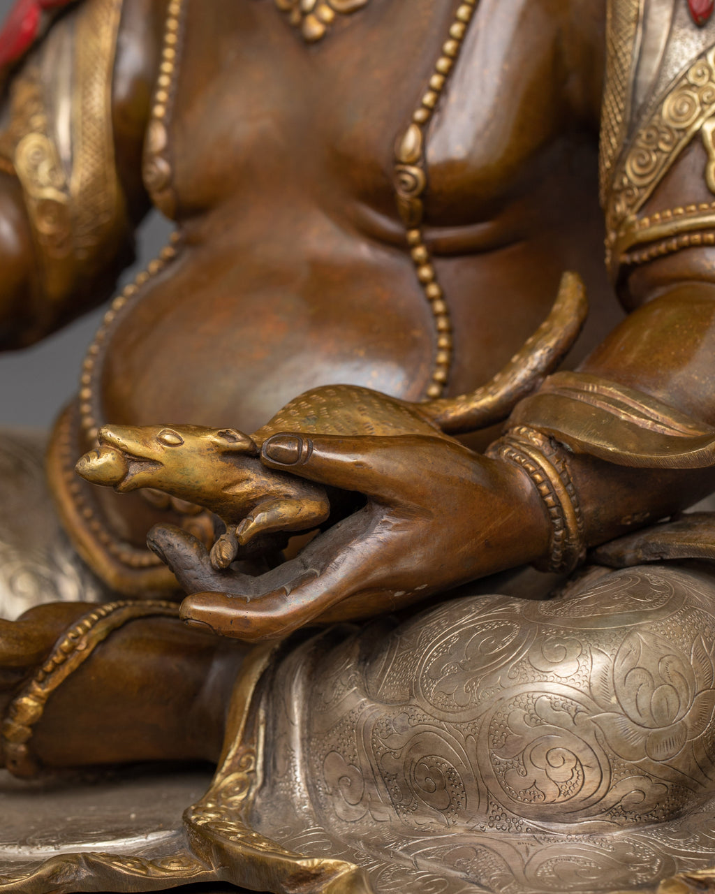 Dzambhala Kuber, a Buddhist deity, is the God of Wealth and Prosperity. This deity represents prosperity, generosity, and wealth and is designed to encourage these values in humans. By bringing this lovely Dzambhala Kuber Statue into your house, you're adding a one-of-a-kind piece of spiritual artwork to your decor and encouraging prosperity, charity, and spiritual growth in your life.