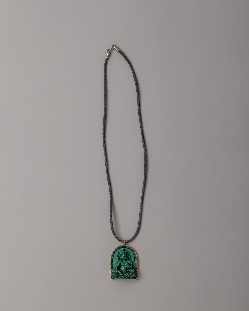 Our Dzambhala Copper Locket, which is 4.5 cm tall and 3 cm wide, is a finely created piece of Buddhist spiritual jewelry. This pendant, made of a powerful copper body with a resin finish, is lightweight at only 0.010 kg, making it suitable for everyday use or as a sacred gift. Copper, valued in Buddhist traditions, is recognized for its spiritual conductivity, which is thought to improve energy flow and attract wealth. This locket acts as an effective charm, representing prosperity, protection, and divine benefits.