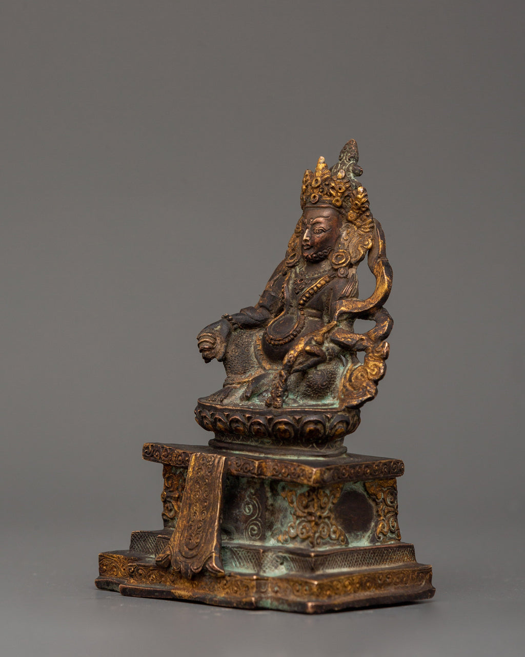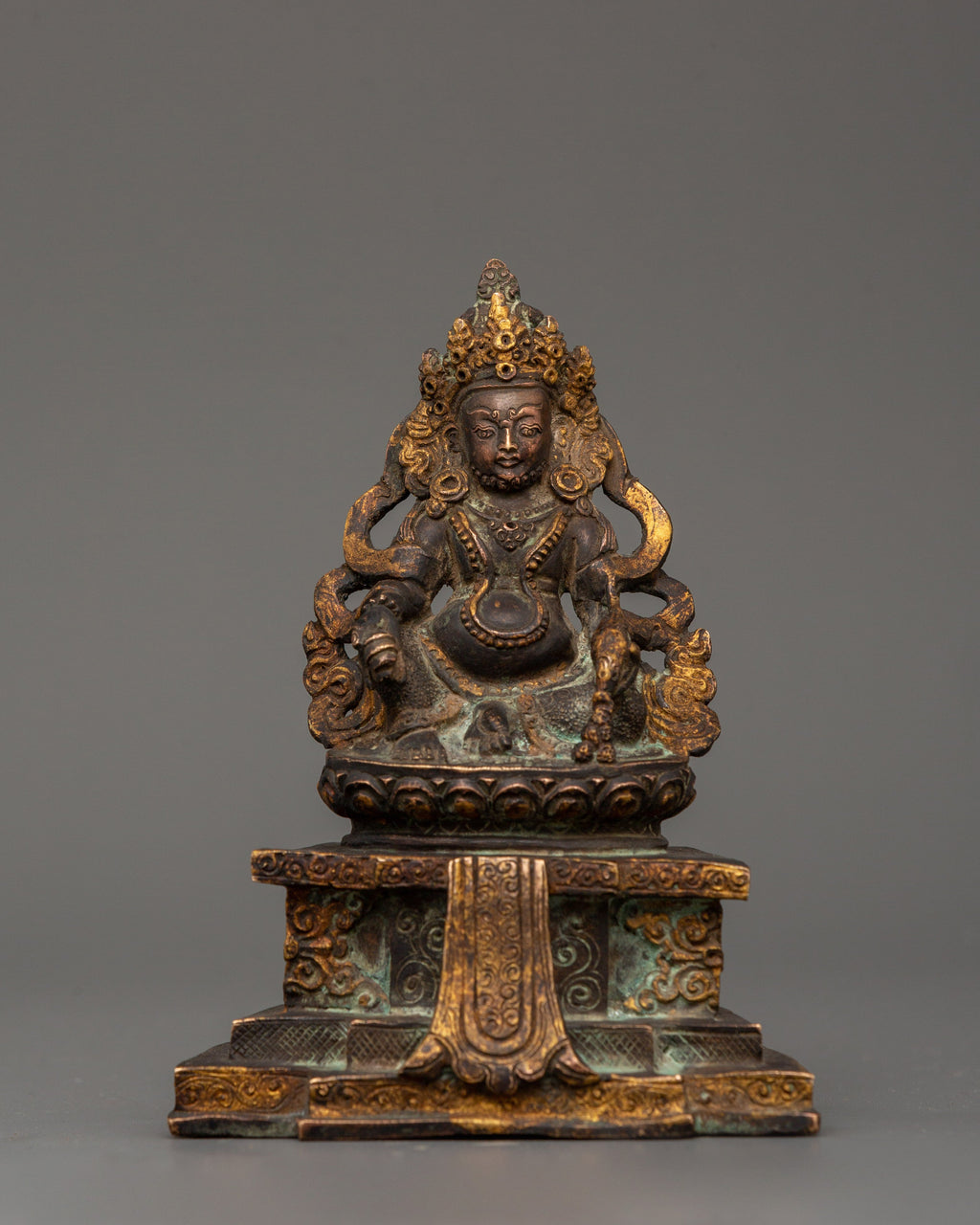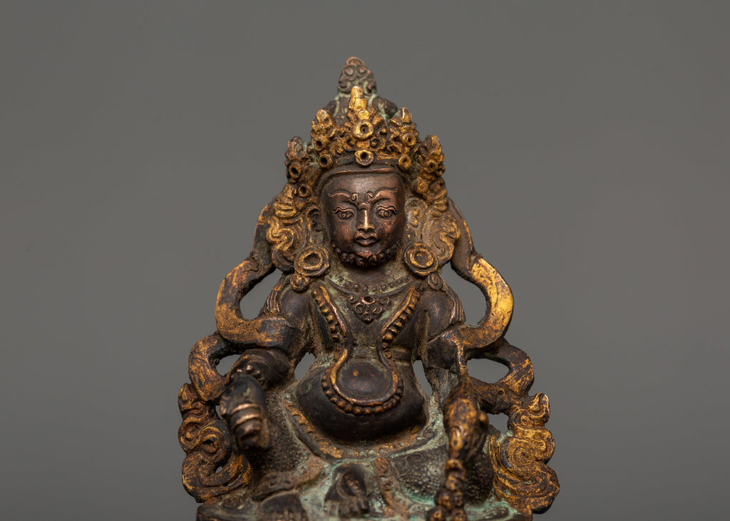 Handcrafted Dzambhala Tibetan Buddhist Wealth Deity Statue in Copper with Antique Finishing