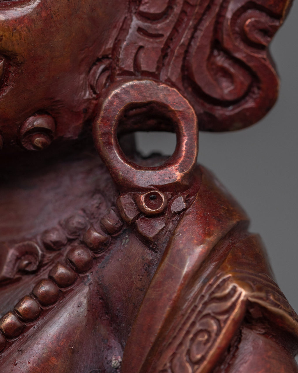This Dzambhala with Oxidized Copper Body Statue, masterfully crafted from oxidized copper, represents the deity of wealth, prosperity, and abundance in Tibetan Buddhism. Seated in a powerful and regal posture. This statue is sitting at Size 5.5”/14cm (Height) x 4.3”/11cm (Base), Weight: 0.648 kg.