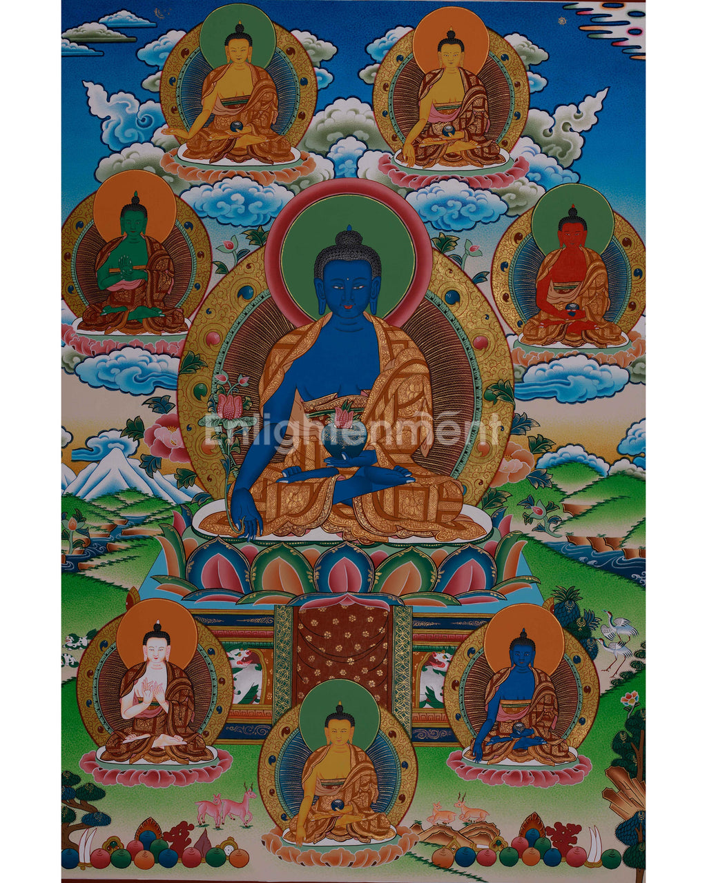 Eight Medicine Buddhas Thangka | Bhaisajyaguru & Healing Deities