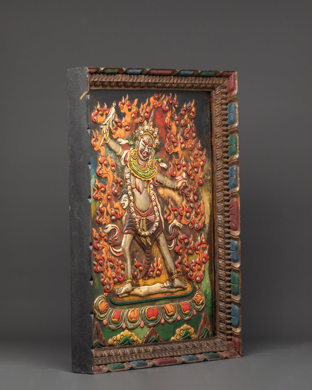 Inspired by traditional Tibetan Buddhist art, this sculpture exemplifies centuries of spiritual symbolism, workmanship, and devotion. This wall hanging is ideal for spiritual practitioners, collectors, and fans of Himalayan culture, as it represents protection, empowerment, and sacred artistry. Its handcrafted features honor the richness of Vajrayana Buddhism while also demonstrating the skill of Himalayan craftspeople. Each stroke and carving indicates a deep reverence for the goddess, elevating it above mere decor to a spiritual statement.