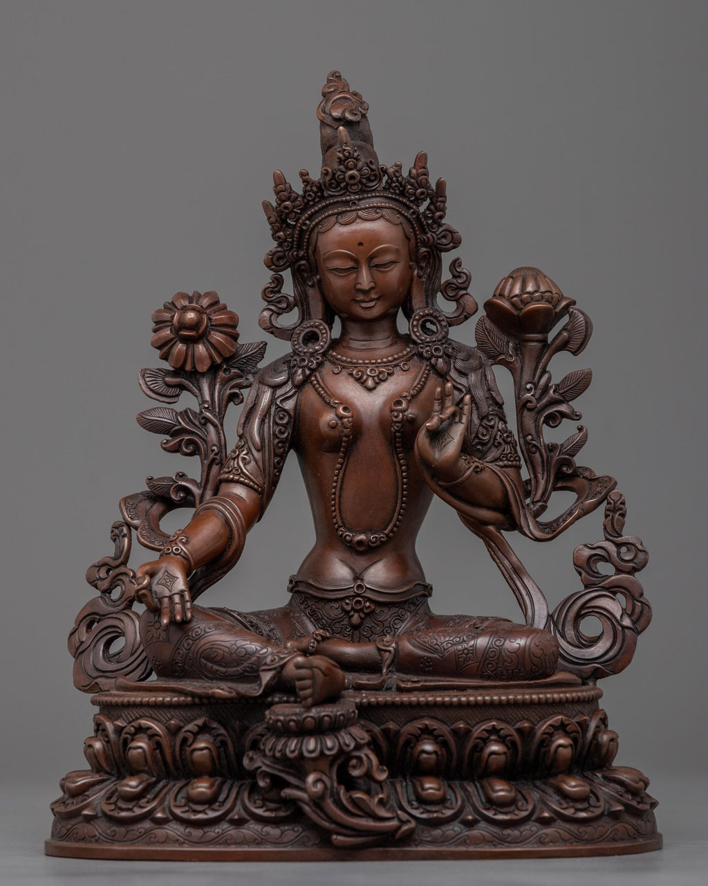 Embrace the Protective Energy of Godess Tare Green with Our Authentic Oxidized Copper Sculpture