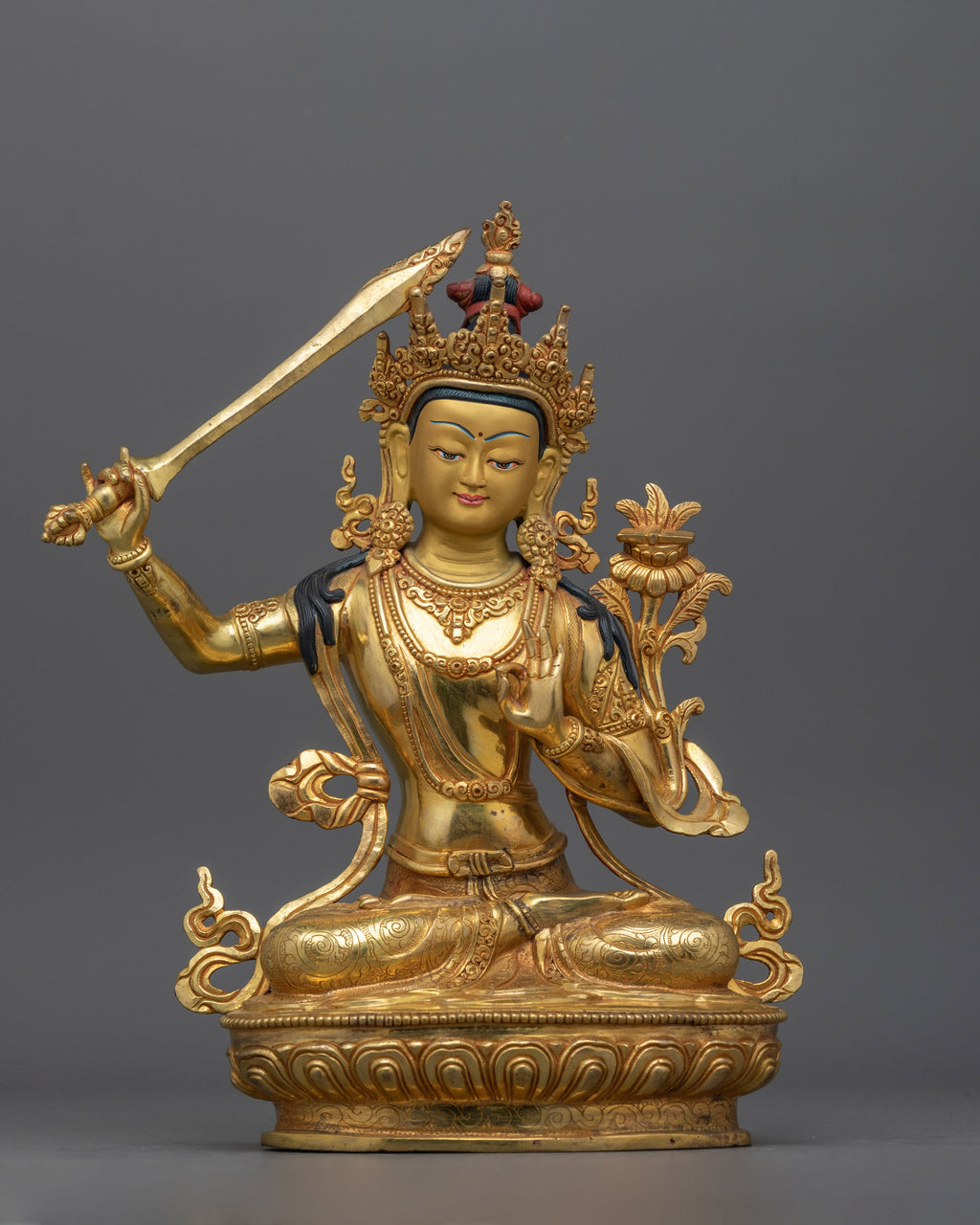 Handcrafted 24K Gold Gilded Manjushri – Embodiment of Wisdom