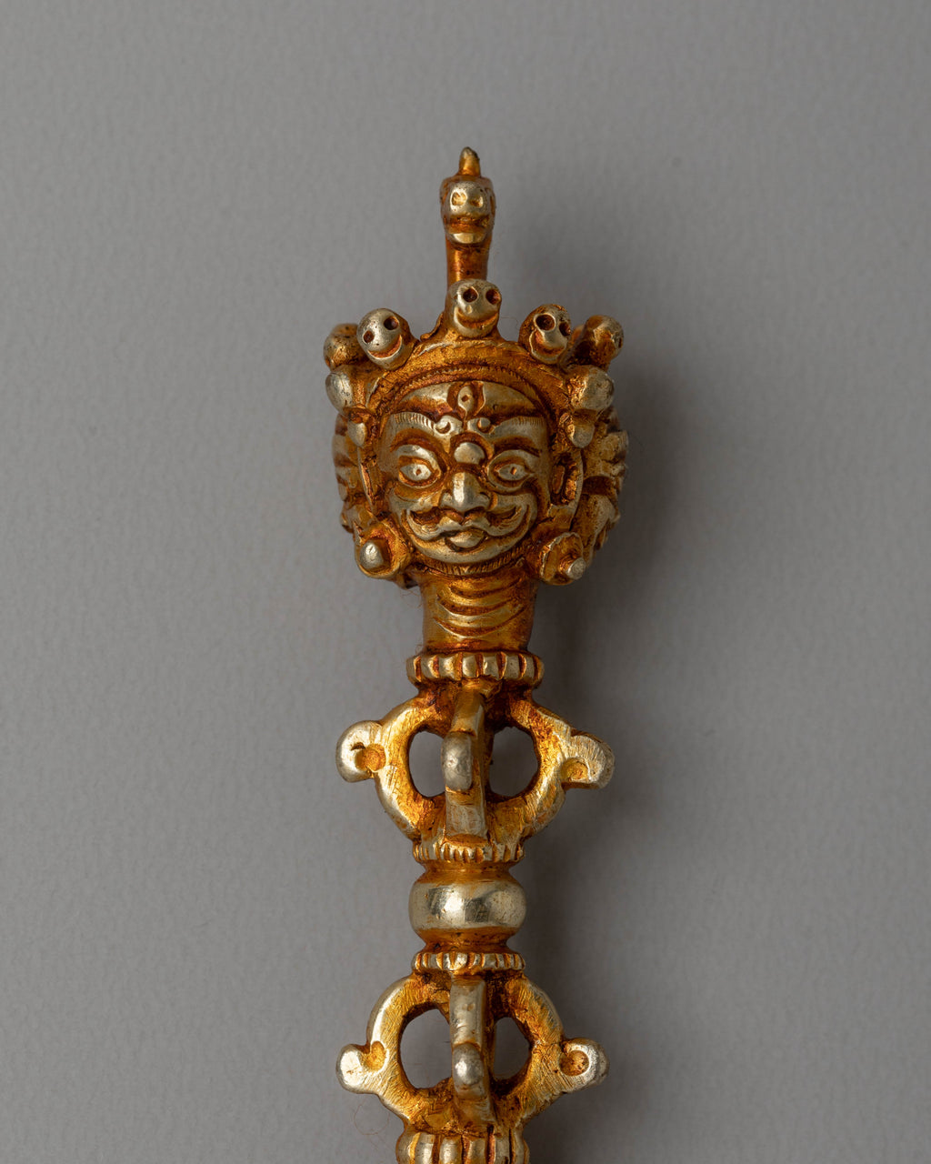 The Phurba's unique three-sided blade represents the elimination of ignorance, desire, and aversion, while its intricate design symbolizes protection and transformation. This ritual dagger not only enhances your meditation practice but also acts as a powerful emblem of inner strength and enlightenment. Whether used for ceremonial purposes or displayed as a sacred artifact, the Evamratna Ritual Dagger will support your journey toward spiritual awakening and balance.