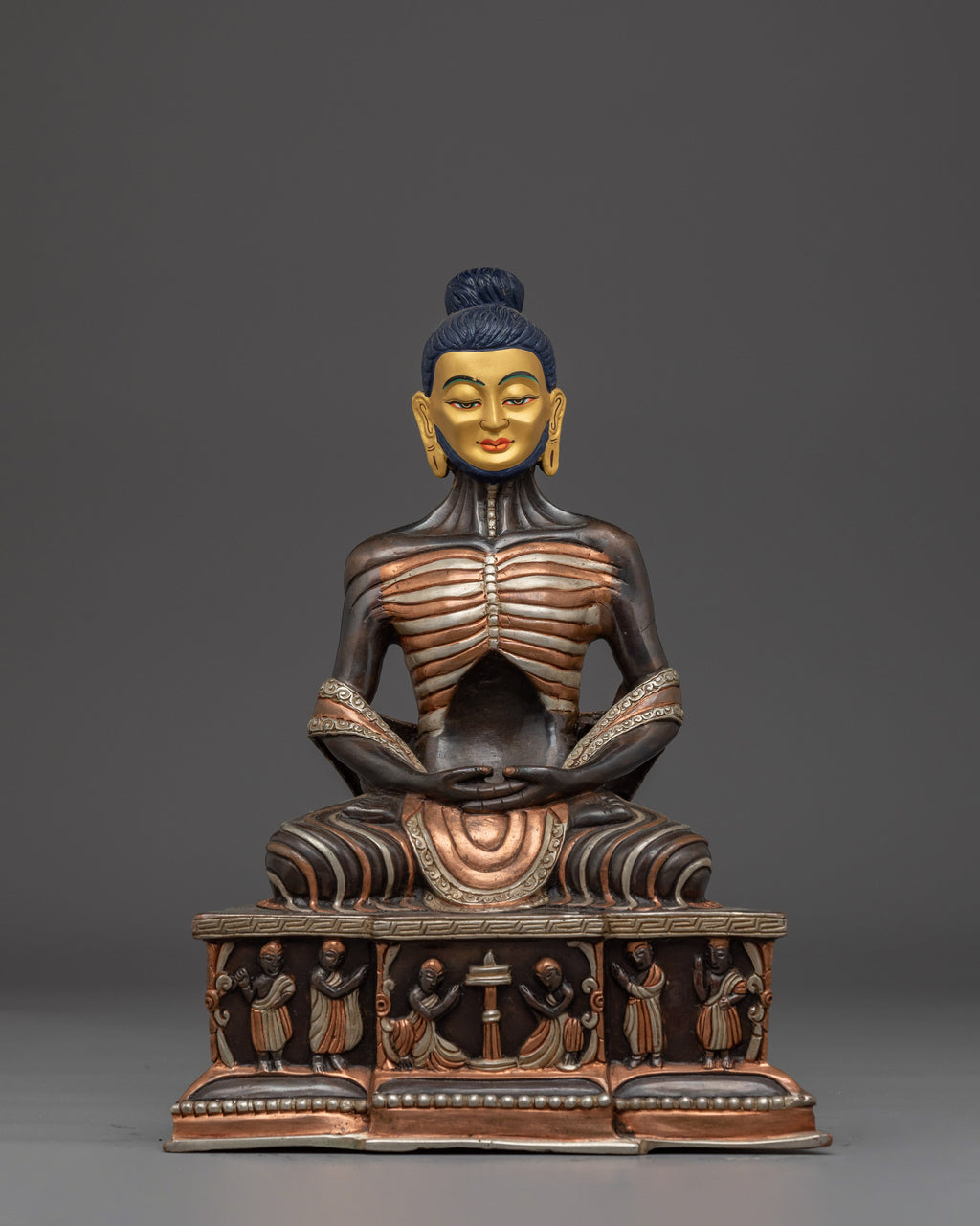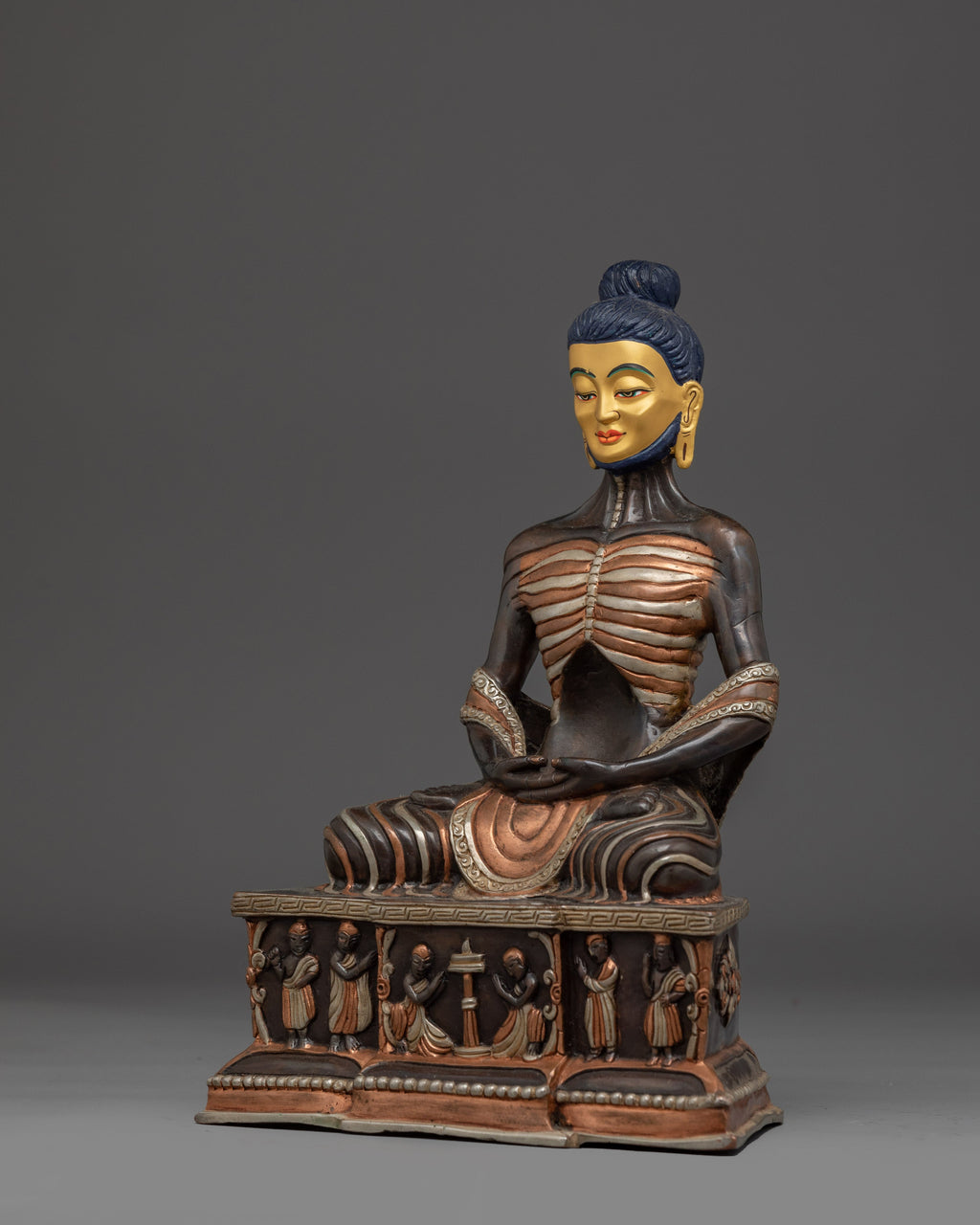 The Fasting Buddha represents Siddhartha Gautama during his six years of extreme asceticism in search of enlightenment. Depicted with a gaunt, skeletal frame and visible ribs, this form symbolizes intense self-discipline, renunciation, and unwavering commitment to the spiritual path. Despite the physical suffering, his serene expression reflects inner peace, wisdom, and the transcendence of worldly attachments.