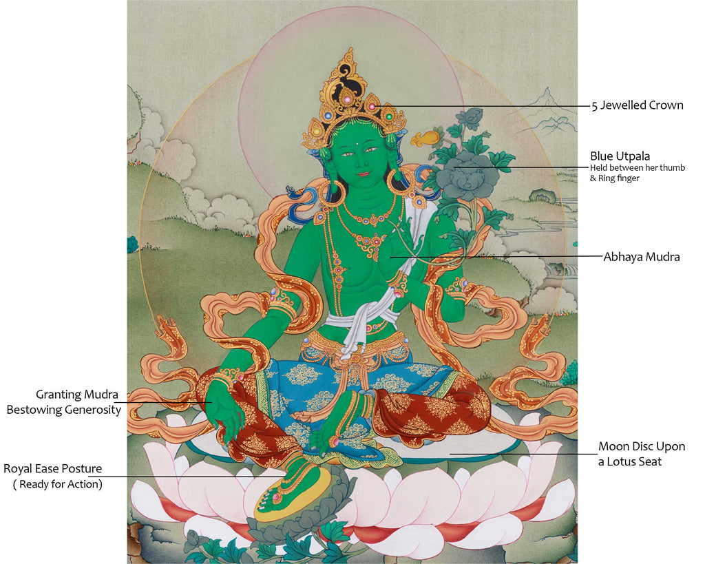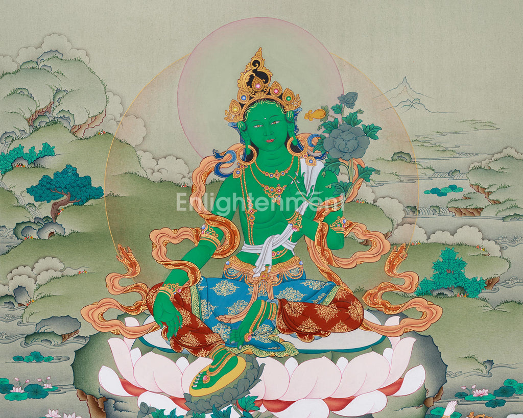 Bring the power of compassion and protection into your home. Order this stunning Female Bodhisattva Green Tara Painting today and invite her healing energy into your life.
