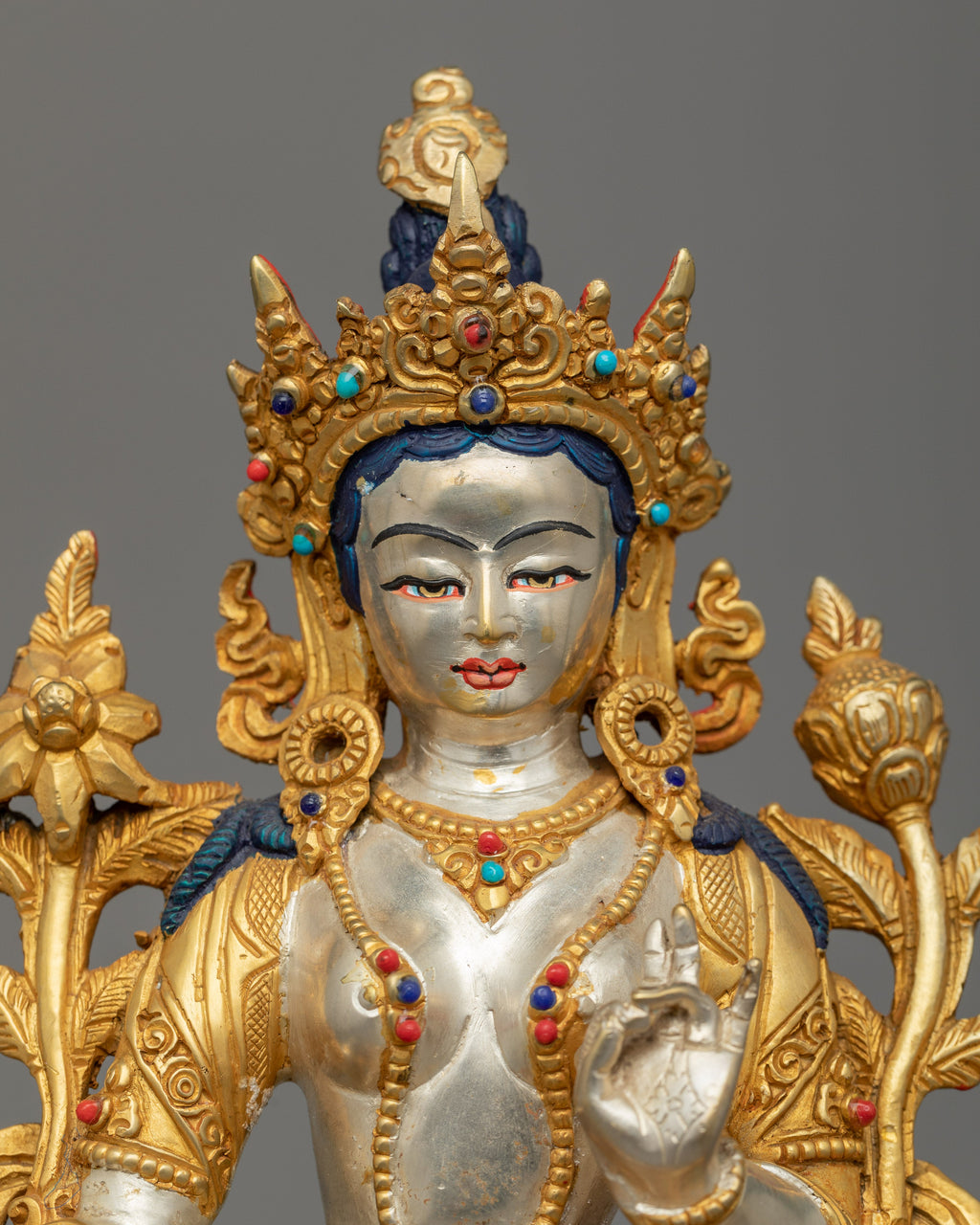 Experience the Elegance of Gold Gilded, Silver Plated, Hand-Painted Craftsmanship with the Female Buddha Goddess