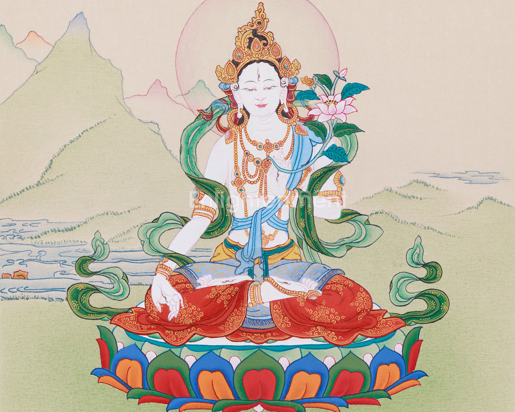Discover the Blessings of Female Buddhist White Tara Thangka | Bodhisattva of Wisdom and Longevity