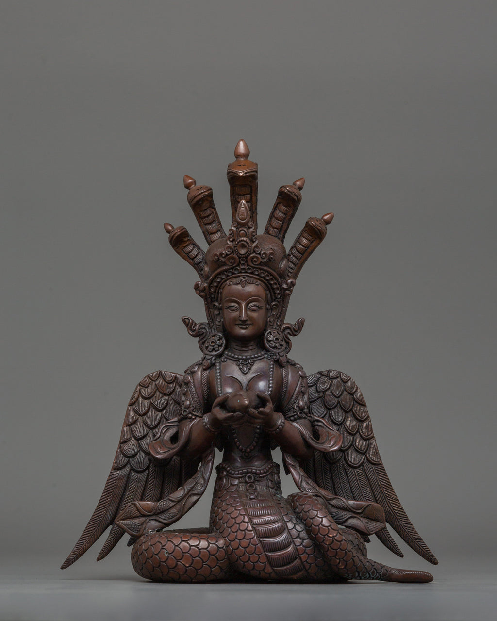 The Serpent Princess, also known as Naga Kanya, is a major figure in both Hindu and Buddhist mythology. She is a representation of both the healing and transformational powers of water and serpents. Naga Kanya is renowned for both her capacity to effect change and growth and for her protecting qualities. Your spiritual development is facilitated by inviting Naga Kanya's calming energy and protective blessings into your home by incorporating a statue of her.