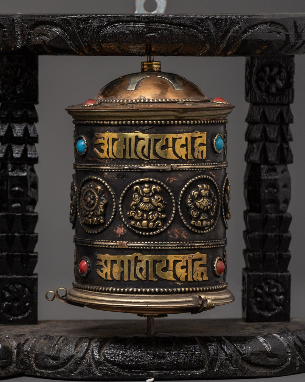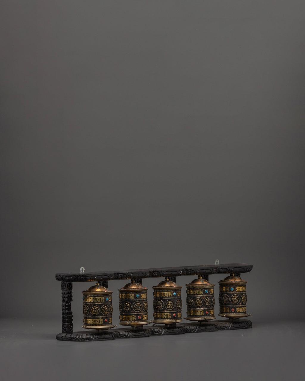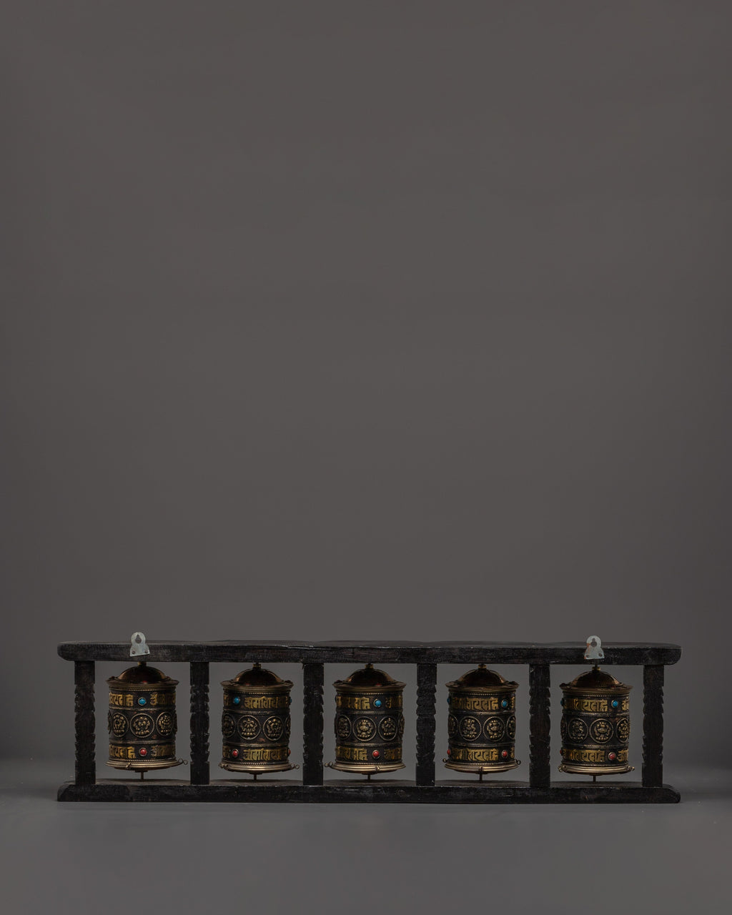 Five Tibetan Prayer Wheels on a Wooden Frame | For Zen Home Decor