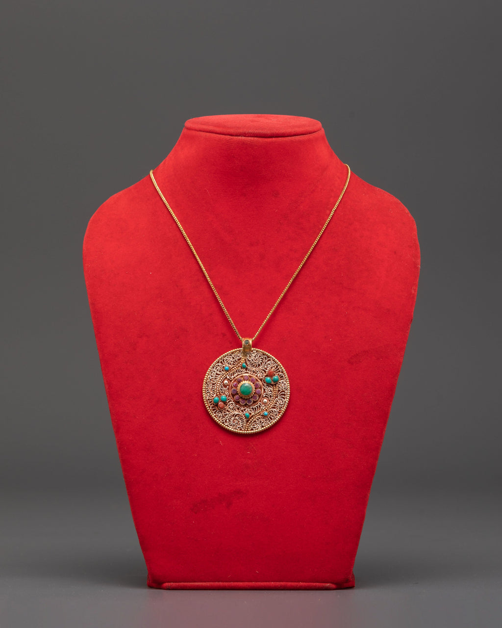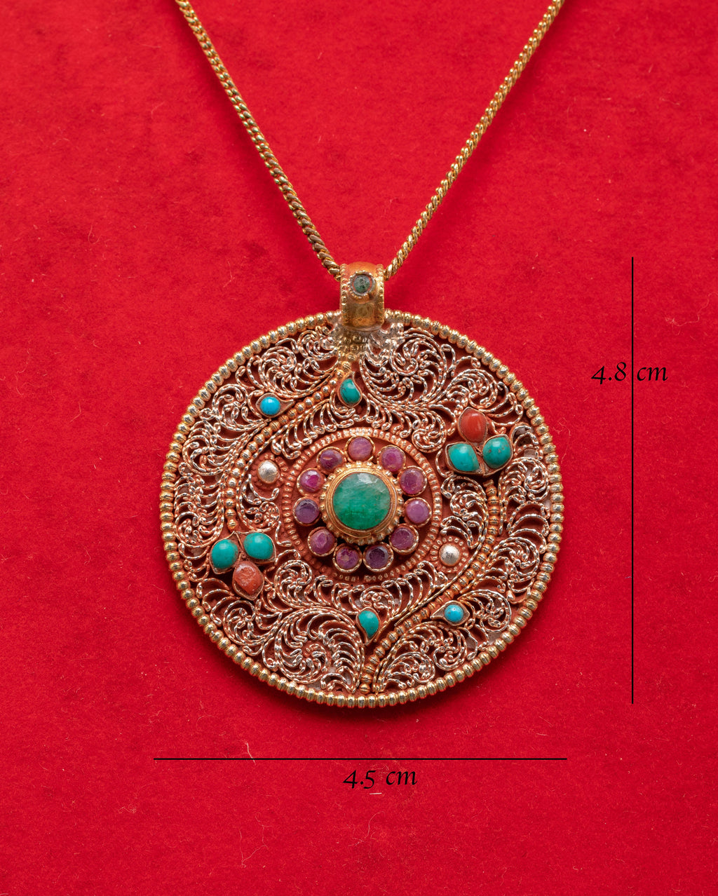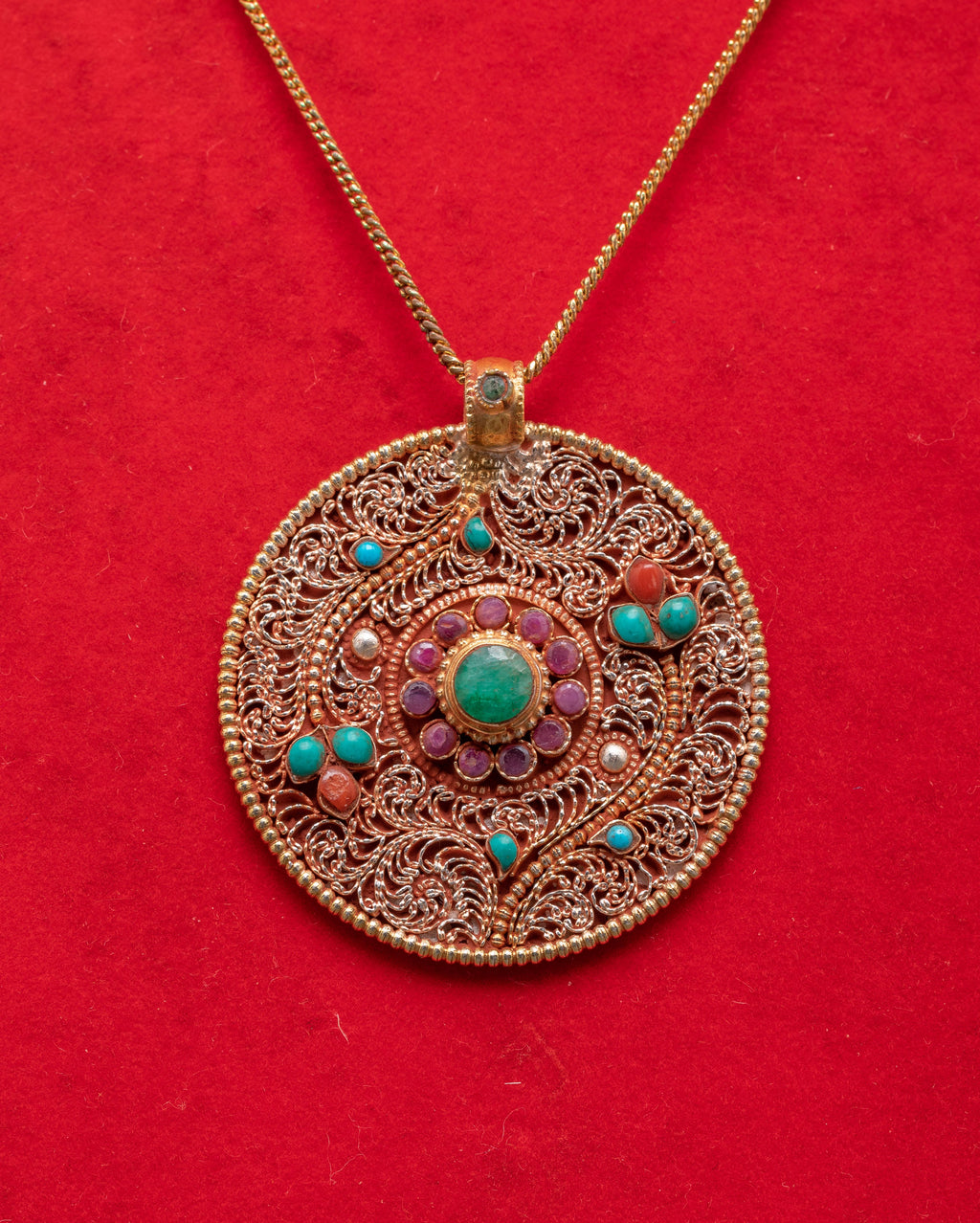 Flower Locket of Panna with Coral and Turquoise