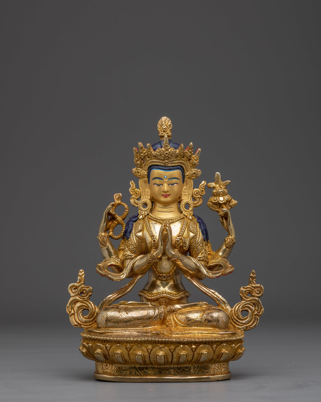 Handmade Four-Armed Chenresig Compassion Sculpture for Dharma Decor