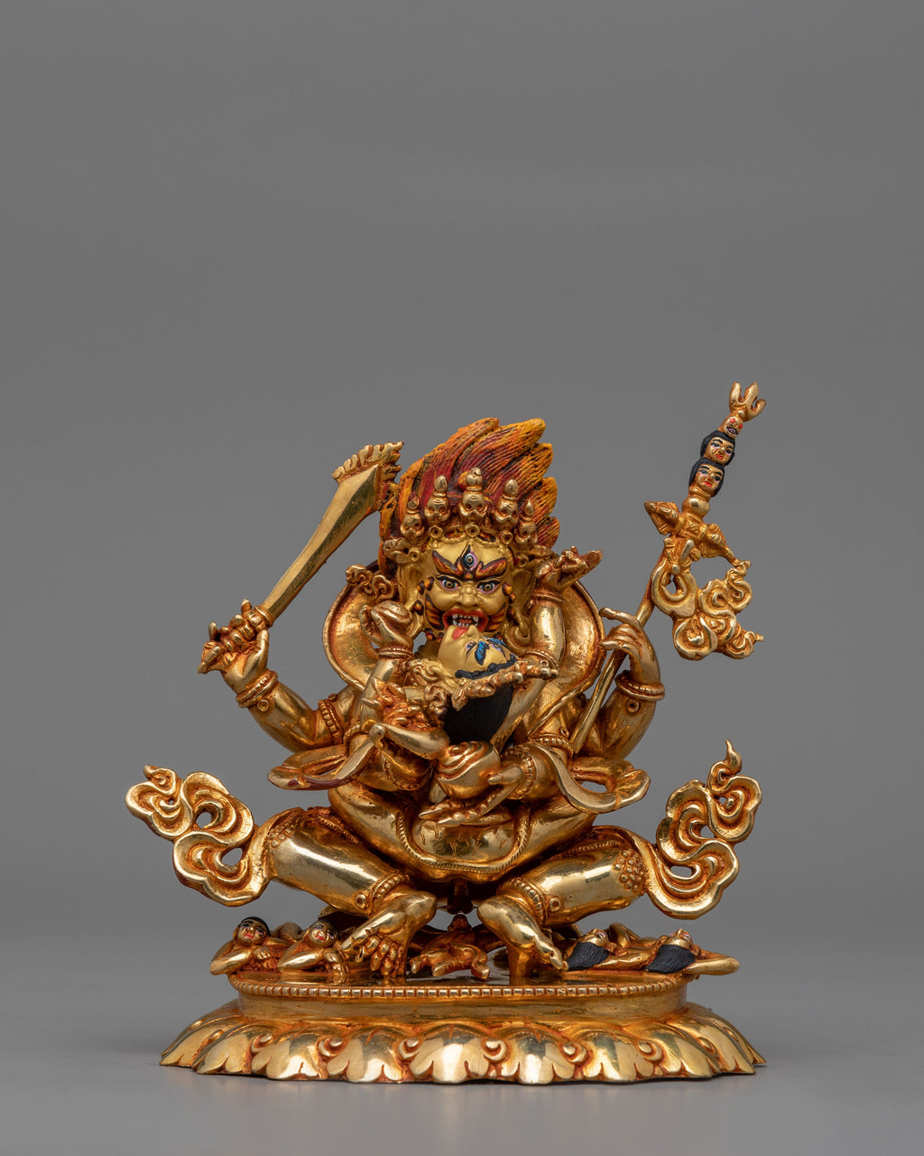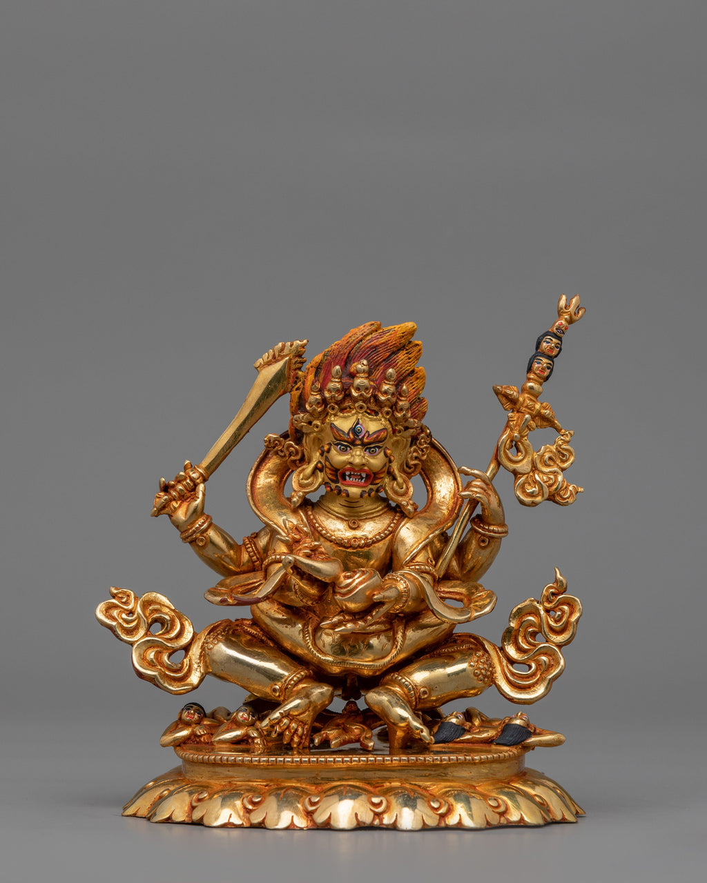 Handmade Four Armed Mahakala Mantra Statue | A Powerful Protector Deity