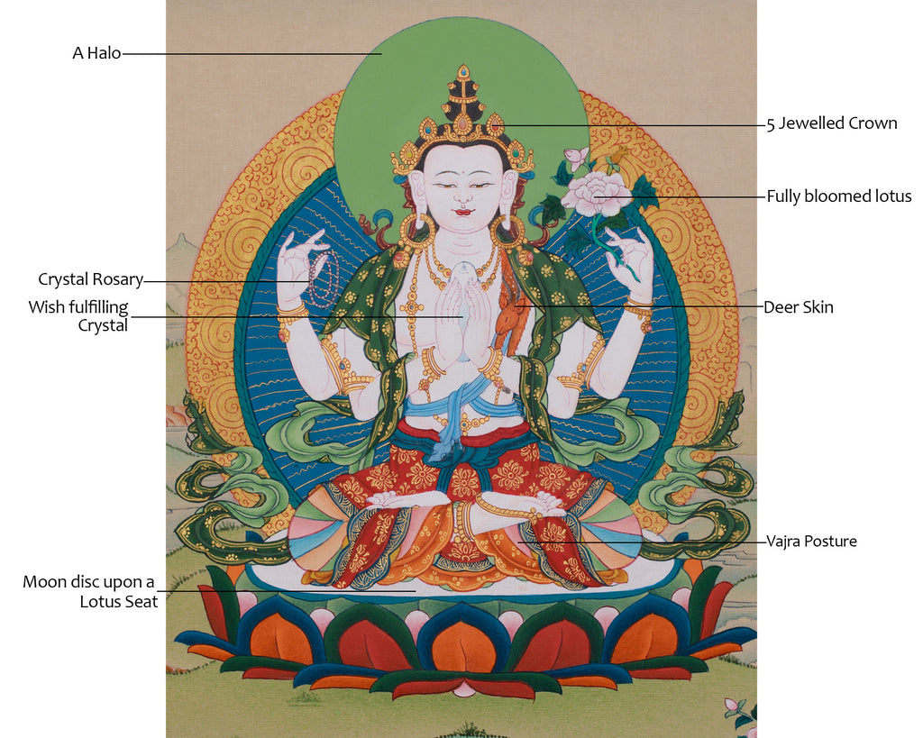 Four-Arms Avalokiteshvara Artwork | The Bodhisattva of Mercy, Compassion & Spiritual Healing