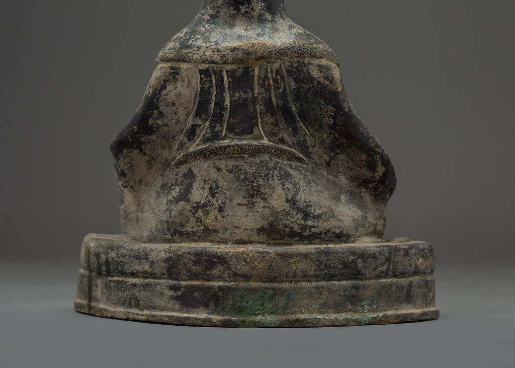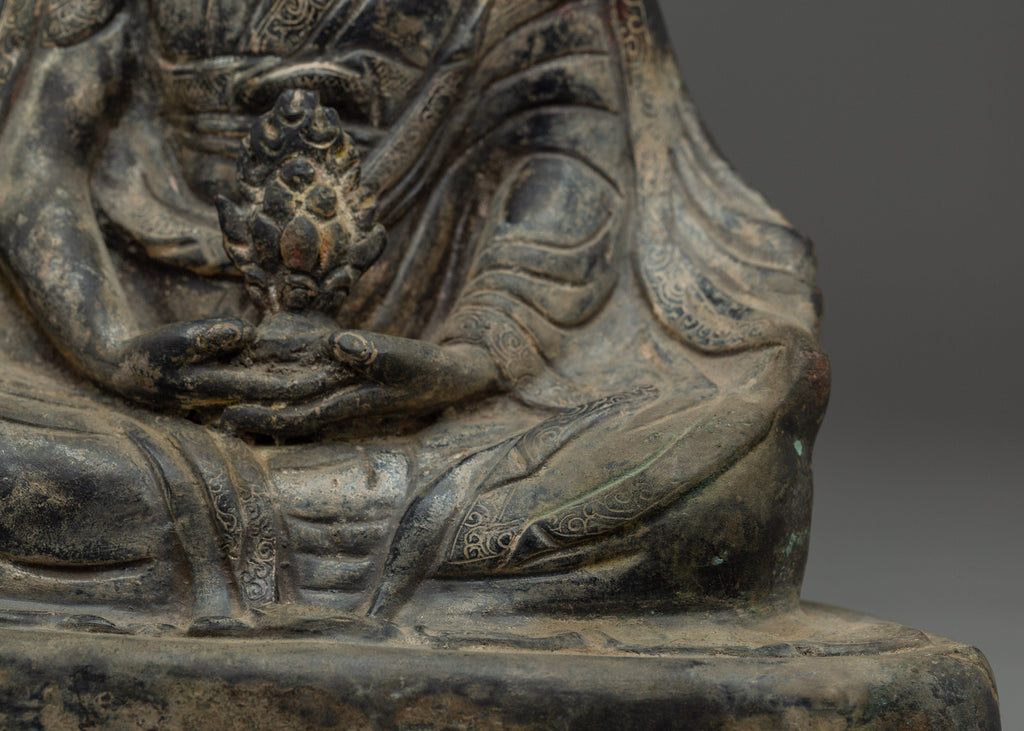 This statue's antique finish creates a sacred atmosphere, making it ideal for a meditation room, personal shrine, or spiritual collection. With his tranquil look and commanding presence, this Gampopa Statue serves as an inspiration to people on the spiritual path, reminding us of the value of knowledge and compassion.