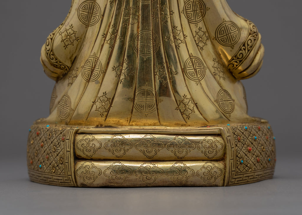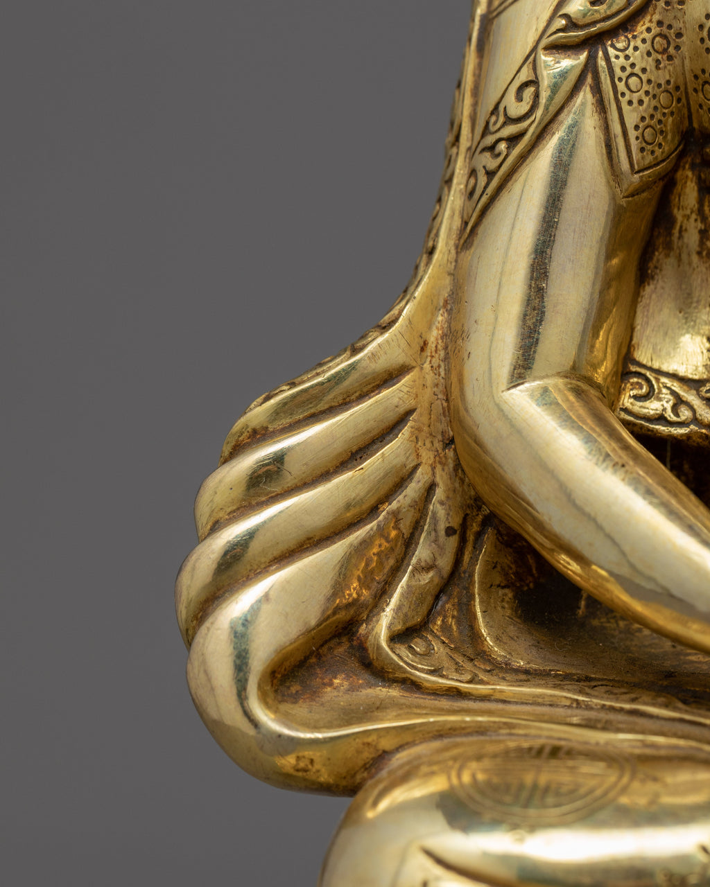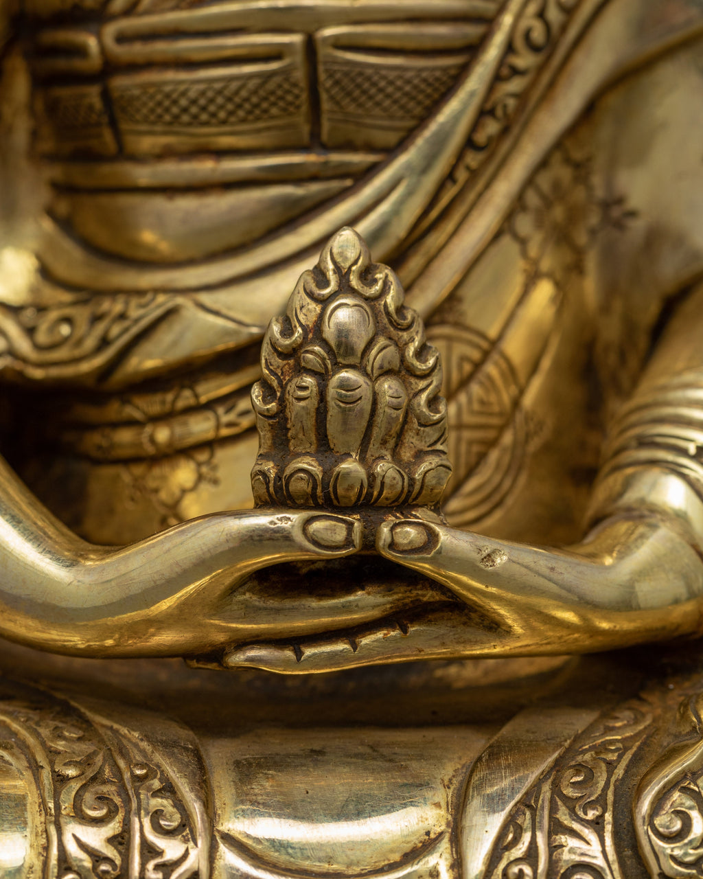 We have sculpted the sculpture of Gampopa in a pure copper body, gilded with genuine 24k gold and hand painted with acrylic colors. In this Buddhist statue, we have depicted a deity on top of a moon disc lotus seat with a tranquil expression. It took more than a month for us to sculpt this Tibetan Master statue as we had to design the robe, lotus, and other essentials in depth. You can use this indoor figurine for many purposes, for your regular meditational activities, in different auspicious Buddhist ceremonies, and for home decor. This Himalayan art of Nepal will be a great gift from Nepal to a practitioner like you.