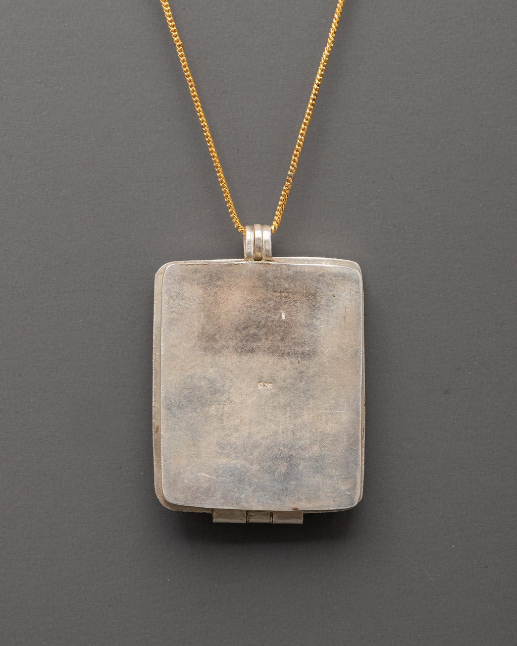 This Tibetan Ghau Box Locket is masterfully created from silver and decorated with a turquoise stone as a sacred prayer box and a protective amulet. Ghau (or Gau) boxes are used in Tibetan Buddhism to store little mantras, prayers, or relics, which serve as a source of spiritual strength and divine protection. This little yet powerful locket, measuring 3cm in height and 2cm in breadth, can be worn as a pendant, carried for protection, or displayed as a sacred relic on an altar.