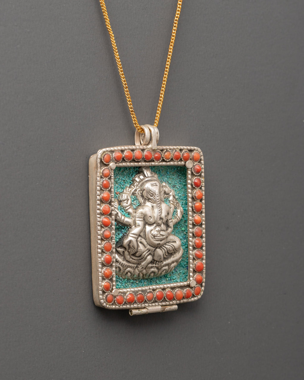 Silver-Plated Buddhist Prayer Ganesh Locket