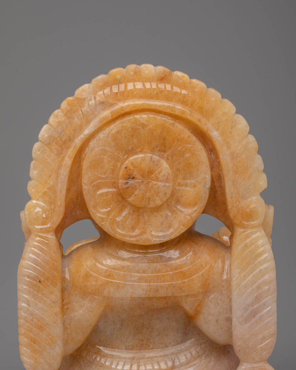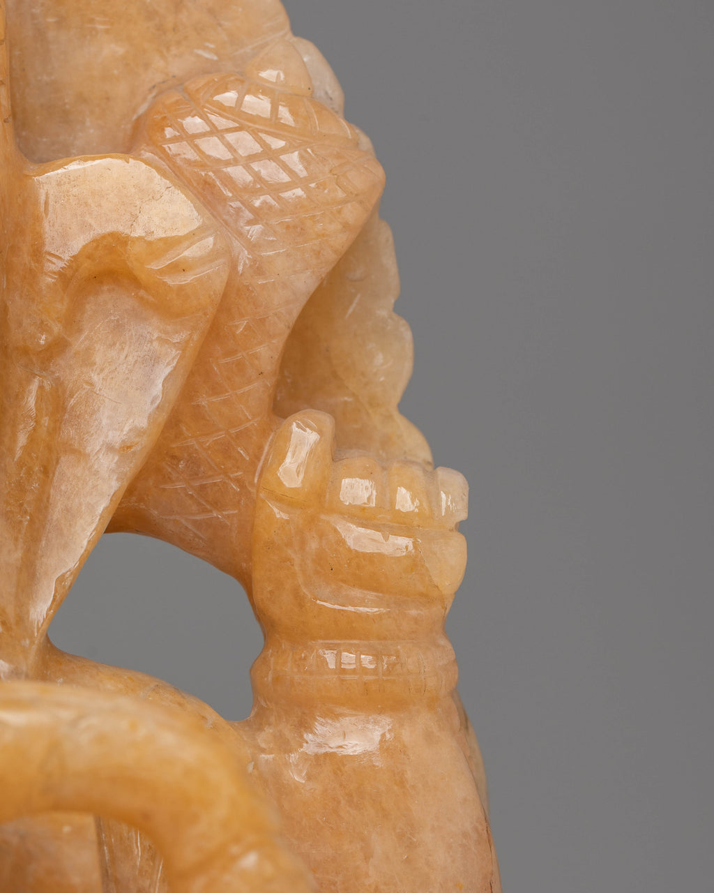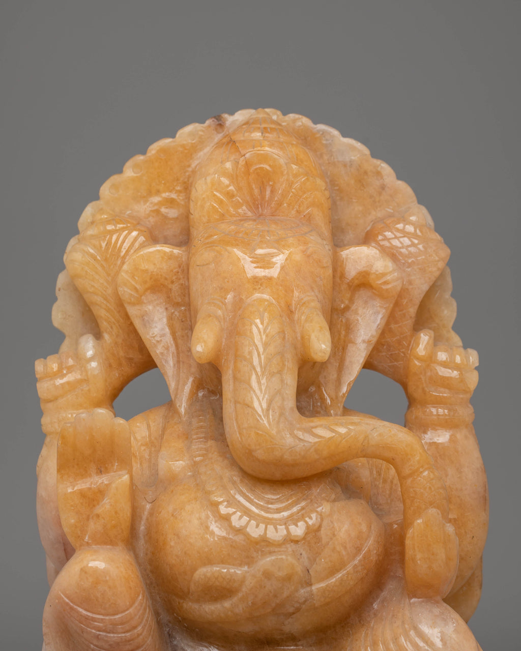 This Aventurine Crystal Ganesh Statue represents the sacred form of Lord Ganesha, one of the most revered deities in Hindu tradition. Known as the remover of obstacles and the lord of beginnings, Ganesha is honored before prayers, and new journey. Carved from natural aventurine crystal, the statue reflects devotional art inspired by temple worship and ancient spiritual customs.