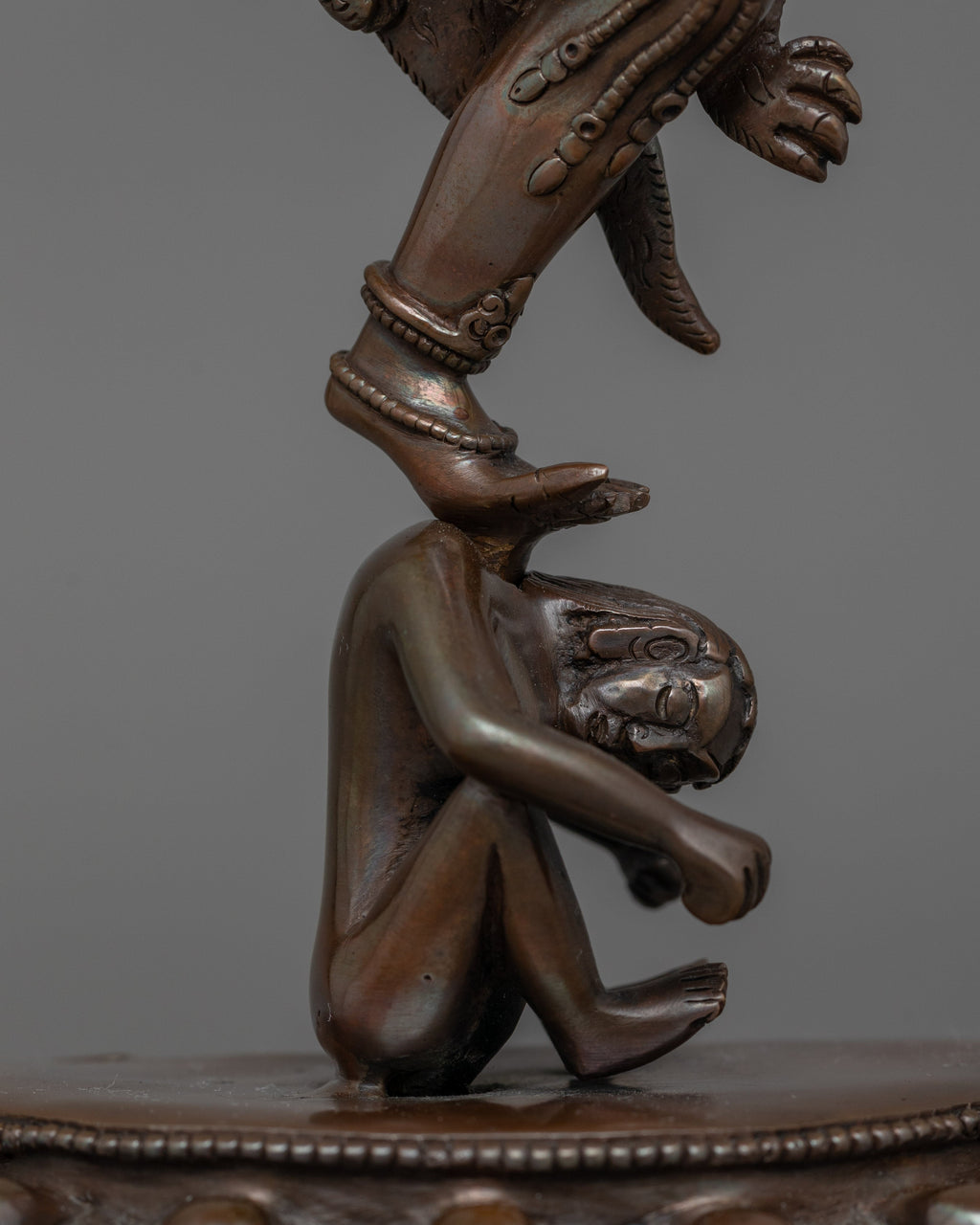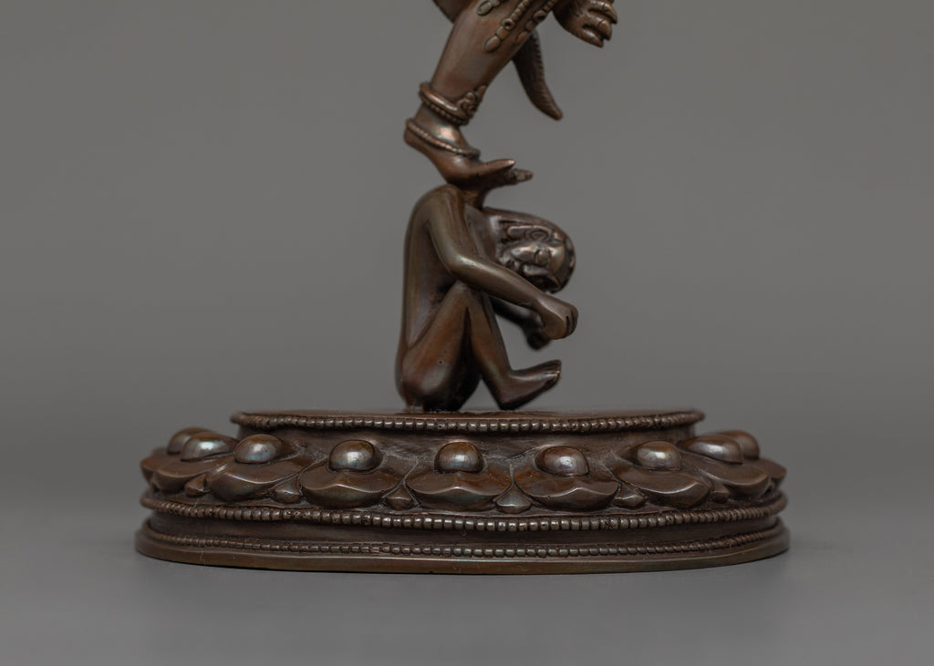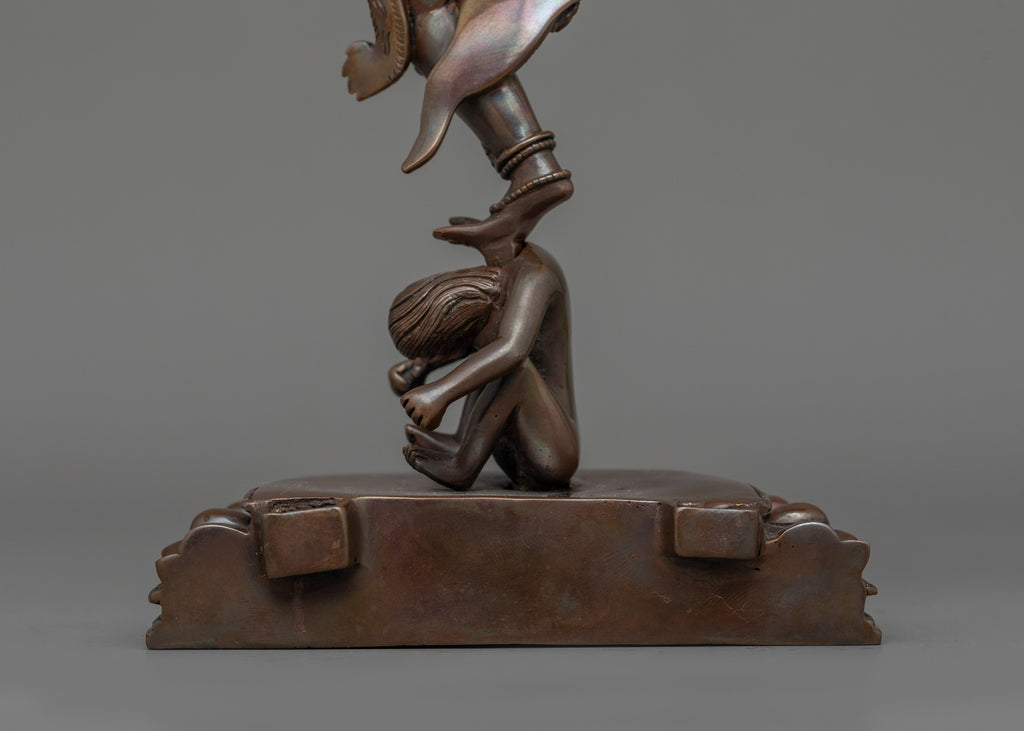 This Garuda Statue, 9.4" (Height) x 7.1" (Base) and weighing 1.81 kg, depicts a mythical divine bird known for its extraordinary speed, power, and capacity to expel negativity in Tibetan and Hindu traditions. Crafted from oxidized copper, this masterwork arises an ancient and sacred atmosphere, making it an excellent addition to any spiritual space, altar, or collection of protective deities. The carefully carved features, from the fierce beak and wings to the dynamic posture, reflect Garuda's unwavering resolve to overcome difficulties and protect practitioners from danger.