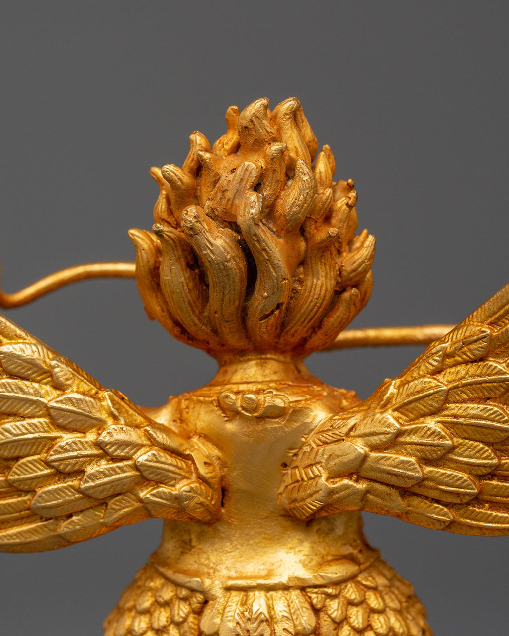 In Tibetan Buddhism, the Garuda symbolizes courageous clarity and swift action against harmful energies. His spread wings, blazing hair, and furious stare provide a sense of strength and spiritual authority. As a guardian figure, Garuda is particularly revered for his ability to ward off disease, psychic disturbances, and obstacles on the path to enlightenment.
