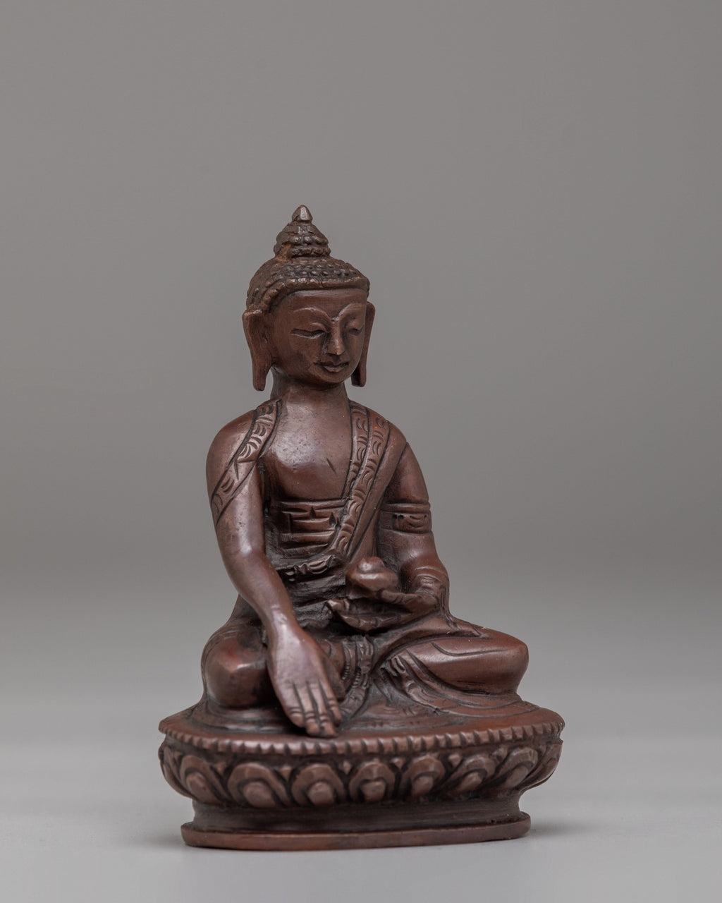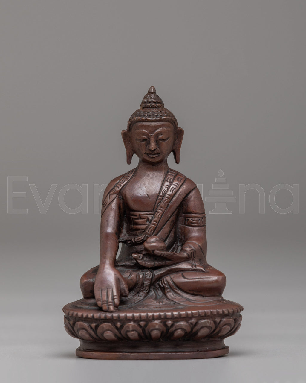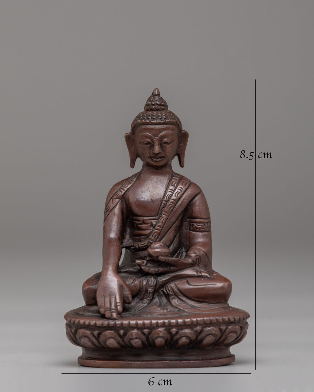 The Gautam Buddha Buddhist Statue is a beautifully detailed representation of Gautam Buddha, the founder of Buddhism and the embodiment of spiritual enlightenment and peace. Standing 8.5 cm tall and 6 cm wide, weighing 0.15 kg, this statue is crafted from oxidized copper, giving it an antique, timeless appearance. Gautam Buddha is depicted in a meditative posture, symbolizing his quest for wisdom, tranquility, and the path to nirvana. This statue serves as a meaningful addition to any meditation space, altar, or sacred room, inspiring peace and spiritual growth.