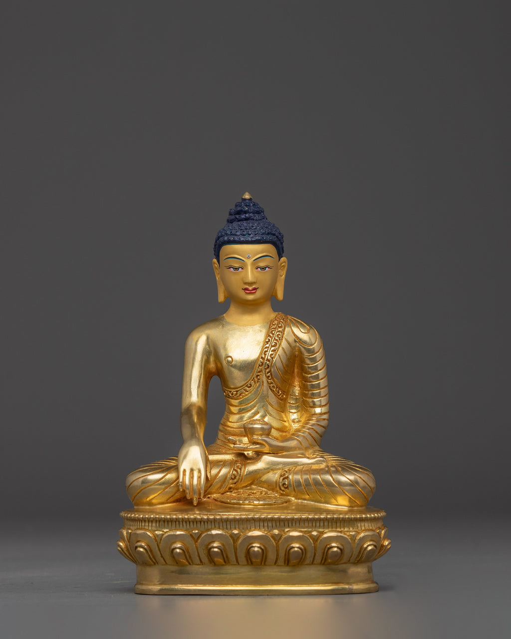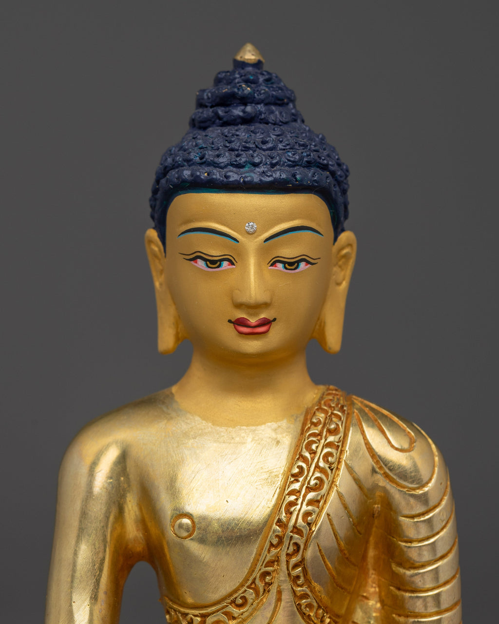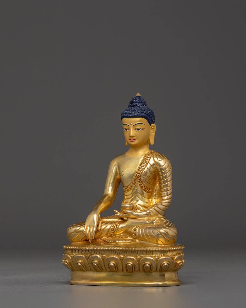 This exquisite Gautama Buddha statue, standing 7.1 inches tall with a 4.7-inch base and weighing 0.95 kg, is crafted from copper and shimmering 24K gold gilding, enhanced by intricate gold and acrylic paintings. It tells the story of Siddhartha Gautama, the enlightened sage born into the noble Shakya clan, renowned for their leadership and spiritual depth. More than a beautiful piece, this statue is a gentle yet profound reminder of the Buddha’s teachings, offering wisdom, compassion, and guidance along the path to enlightenment.