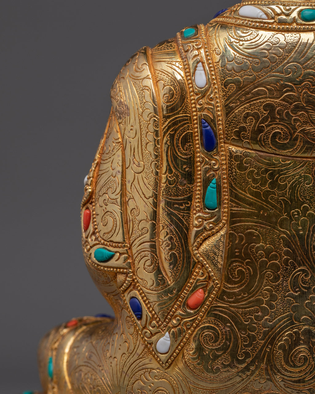 Material: 24K Gold Gilded, Gold & Acrylic Paintings, Copper Body, Handcarved Gemstones